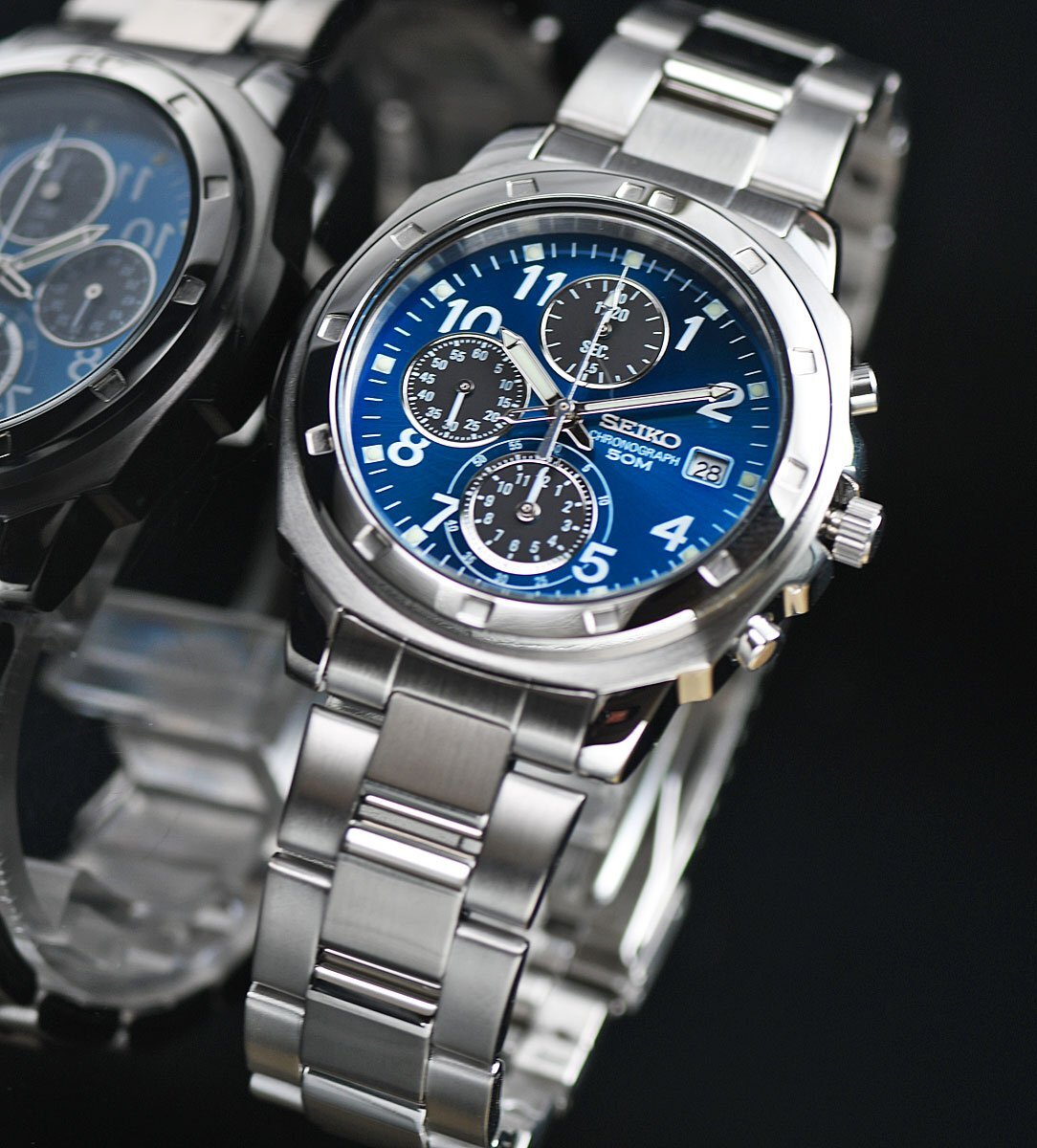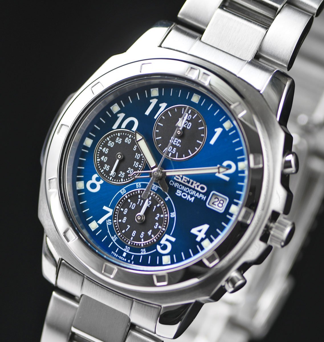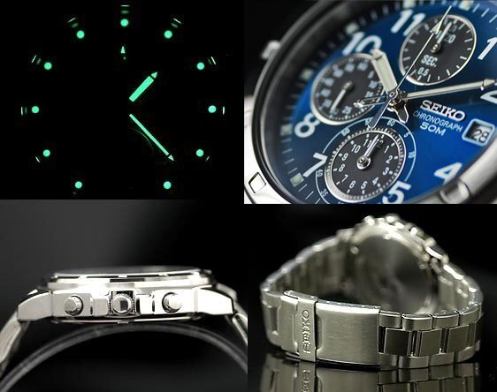 セイコー【メーカー正規3年保証】新品1円 逆輸入 ブルーメタリック 純正箱付き 50m防水 クロノグラフ 腕時計 未使用 SEIKO メンズ