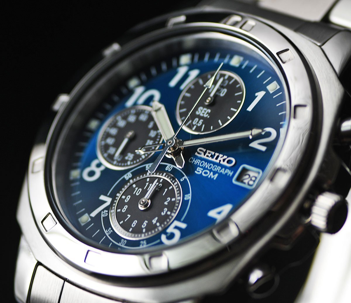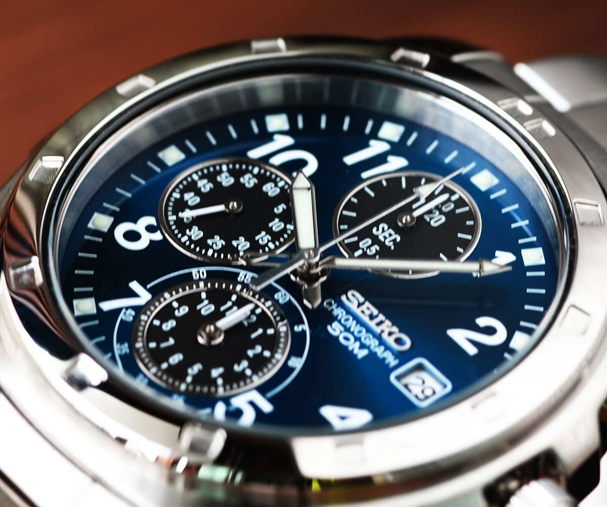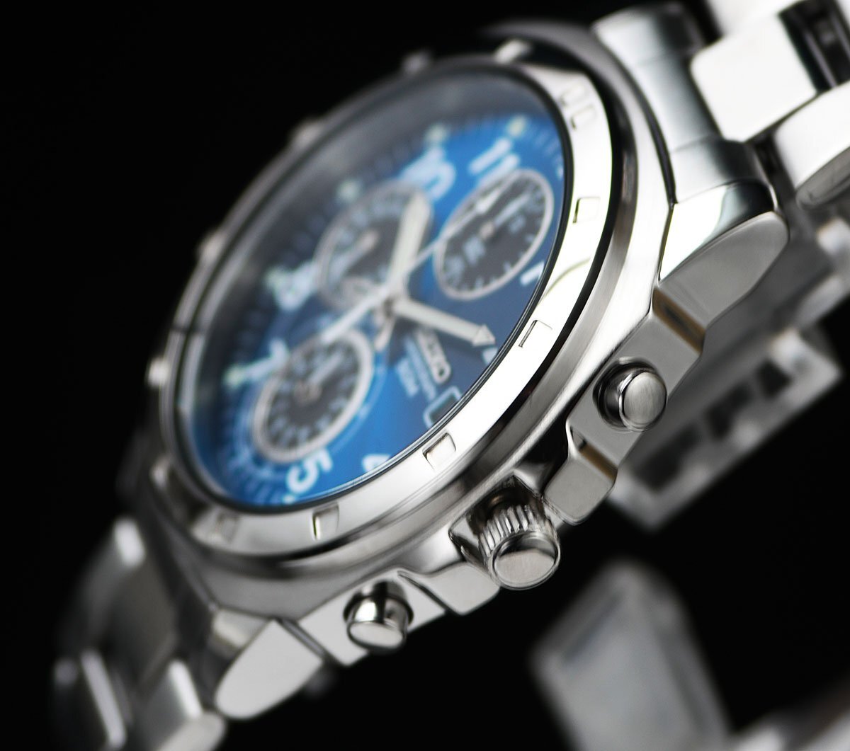 スペック的にも1/20秒ストップウォッチ、50m防水、デイトカレンダー、スクリューバック、ルミナイト蓄光機能等々充実しておりおしゃれなルックスなだけでなくスポーティな高性能時計。