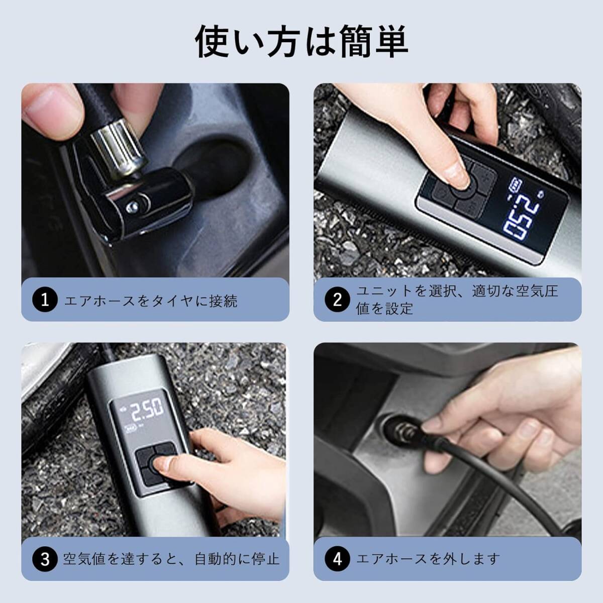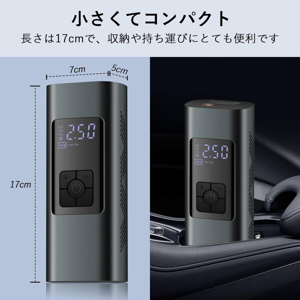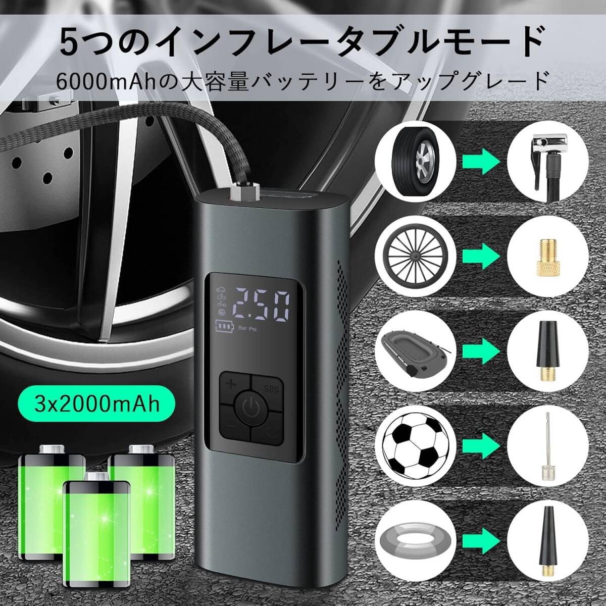 空気入れ 電動 電動エアーポンプ 充電式 エアコンプレッサー コードレス充電式 エアーポンプ 携帯空気ポンプ 150PSI 6000mAh 車/バイク/ボール/浮き輪 対応収納袋付き 日本語取扱説明書付