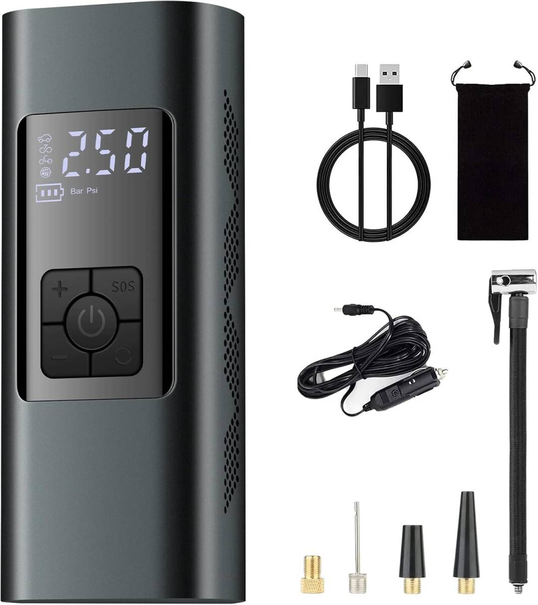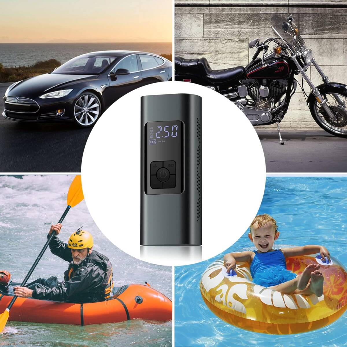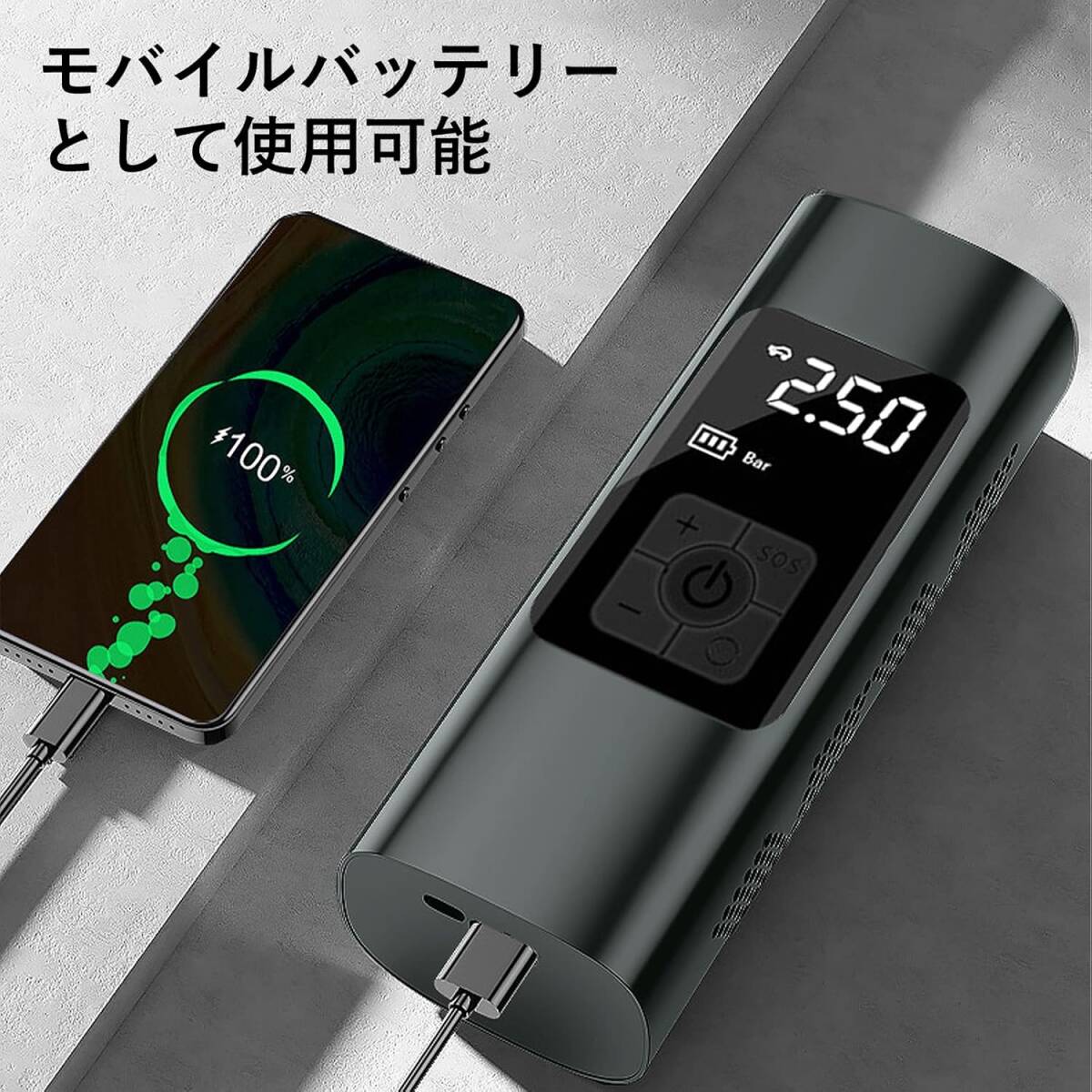 空気入れ 電動 電動エアーポンプ 充電式 エアコンプレッサー コードレス充電式 エアーポンプ 携帯空気ポンプ 150PSI 6000mAh 車/バイク/ボール/浮き輪 対応収納袋付き 日本語取扱説明書付