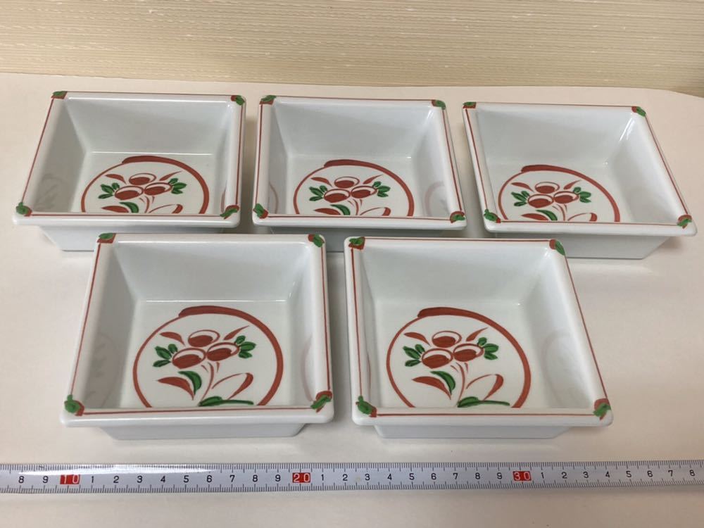 和食器風 赤絵 プラスチック 四角 小鉢 向付 5枚組 日本製 11.5×11.5×高さ4センチ ★ 1~5。