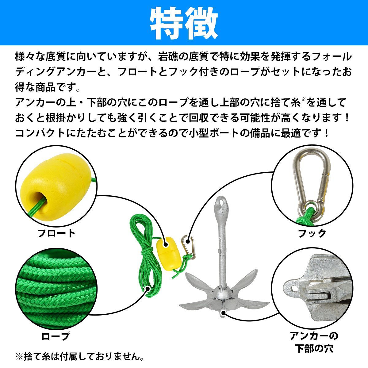 『ロープ アンカー セット』フォールディングアンカー 2.5kg フロート/ロープ/フック付!ジェットスキー 船 カヌー 錨