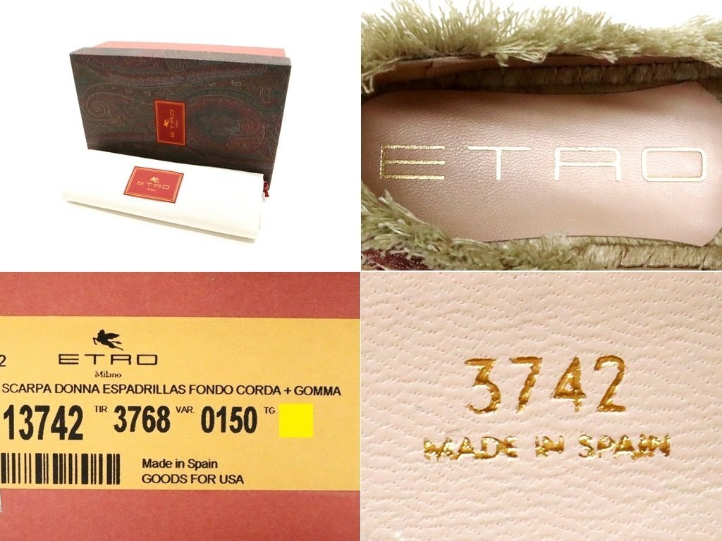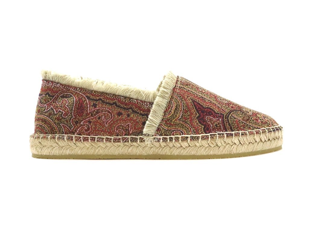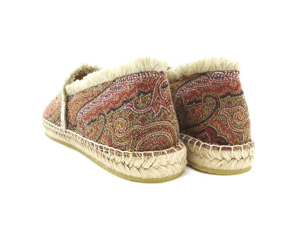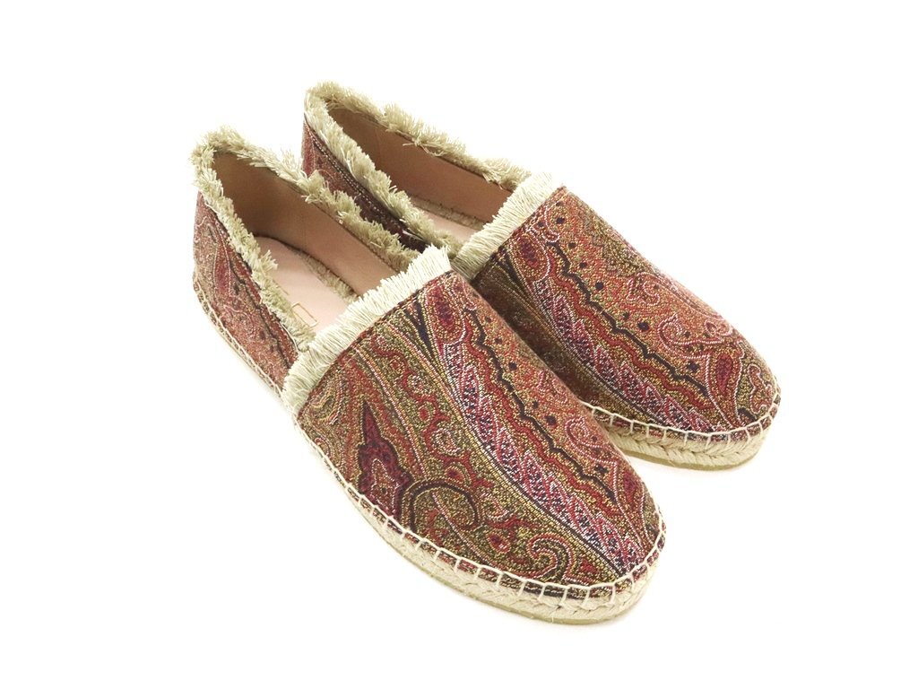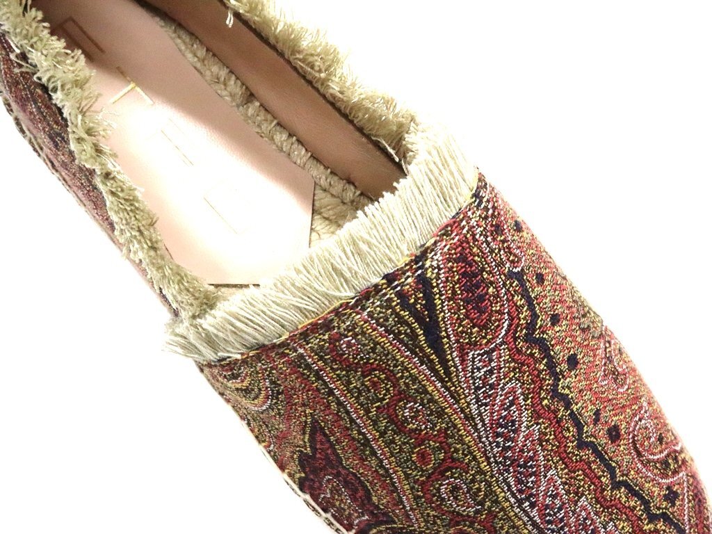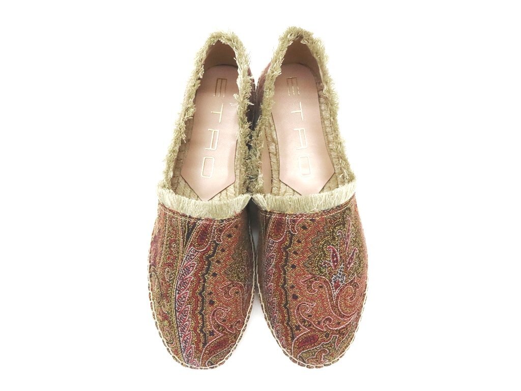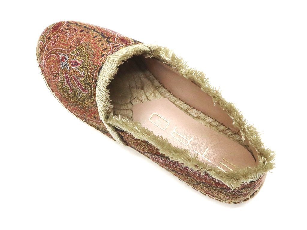 10万新品◆38=23.5cm程度【ETRO】エトロ ペイズリー柄 ジャガード織りマルチカラー フリンジデザイン エスパドリーユスリッポン