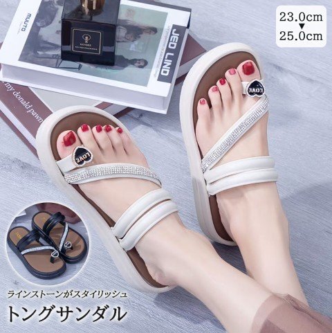 ・ラインストーンがスタイリッシュなトングサンダル。