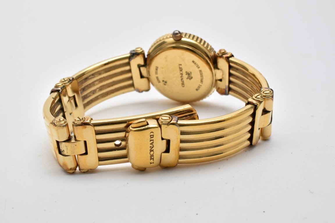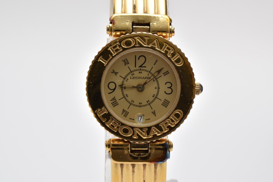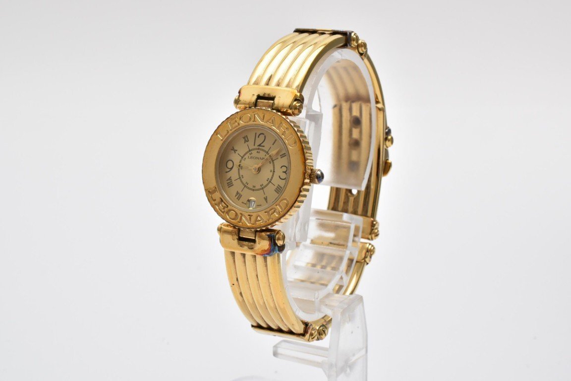 LEONARD レオナール 腕時計 レディース クォーツ式 ゴールド ゴールド文字盤 ブレスウォッチ デイト 2針 電池式