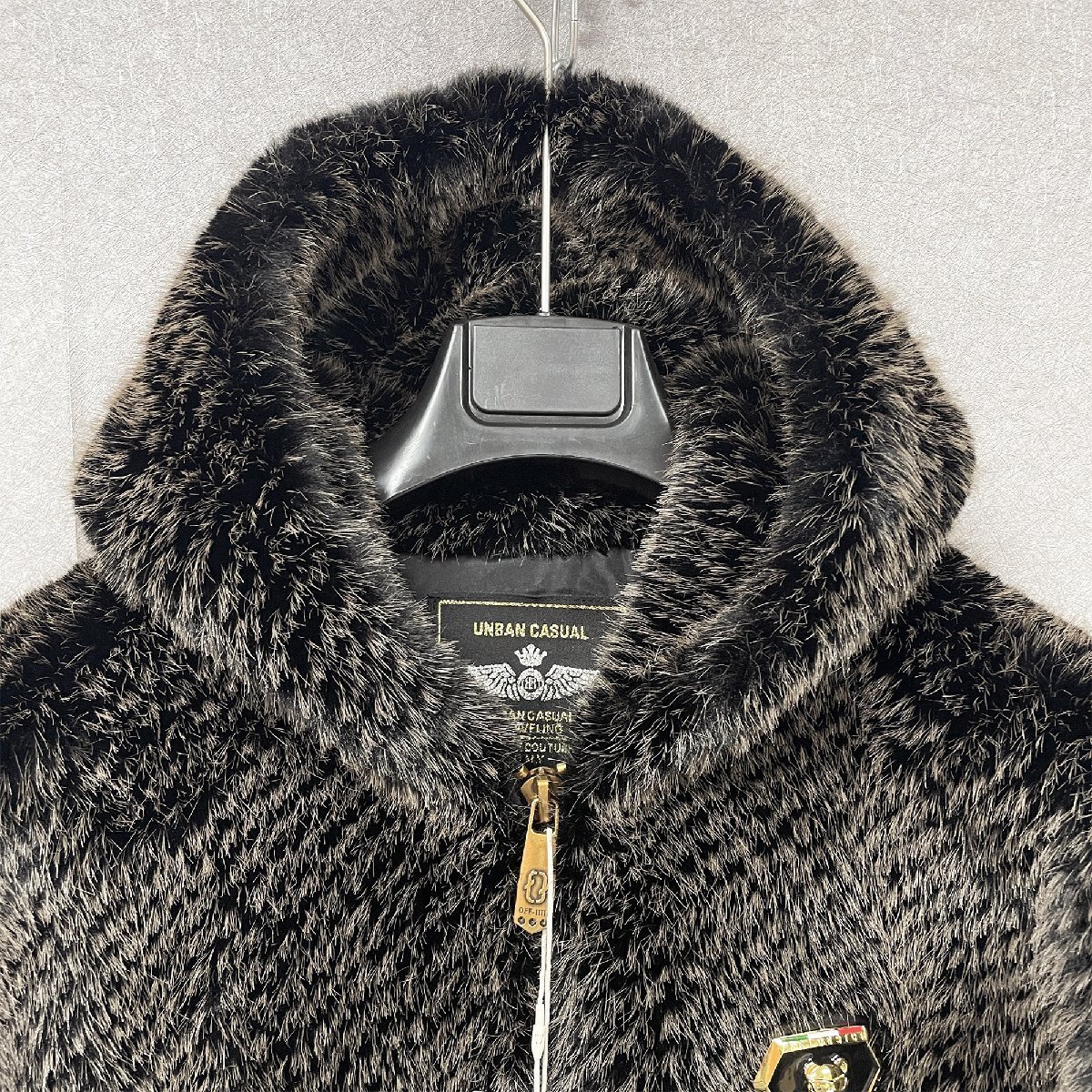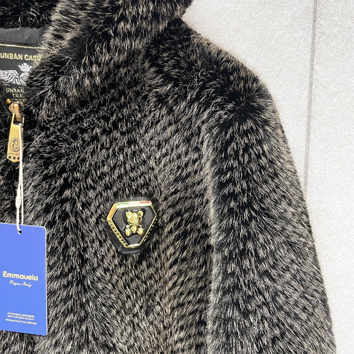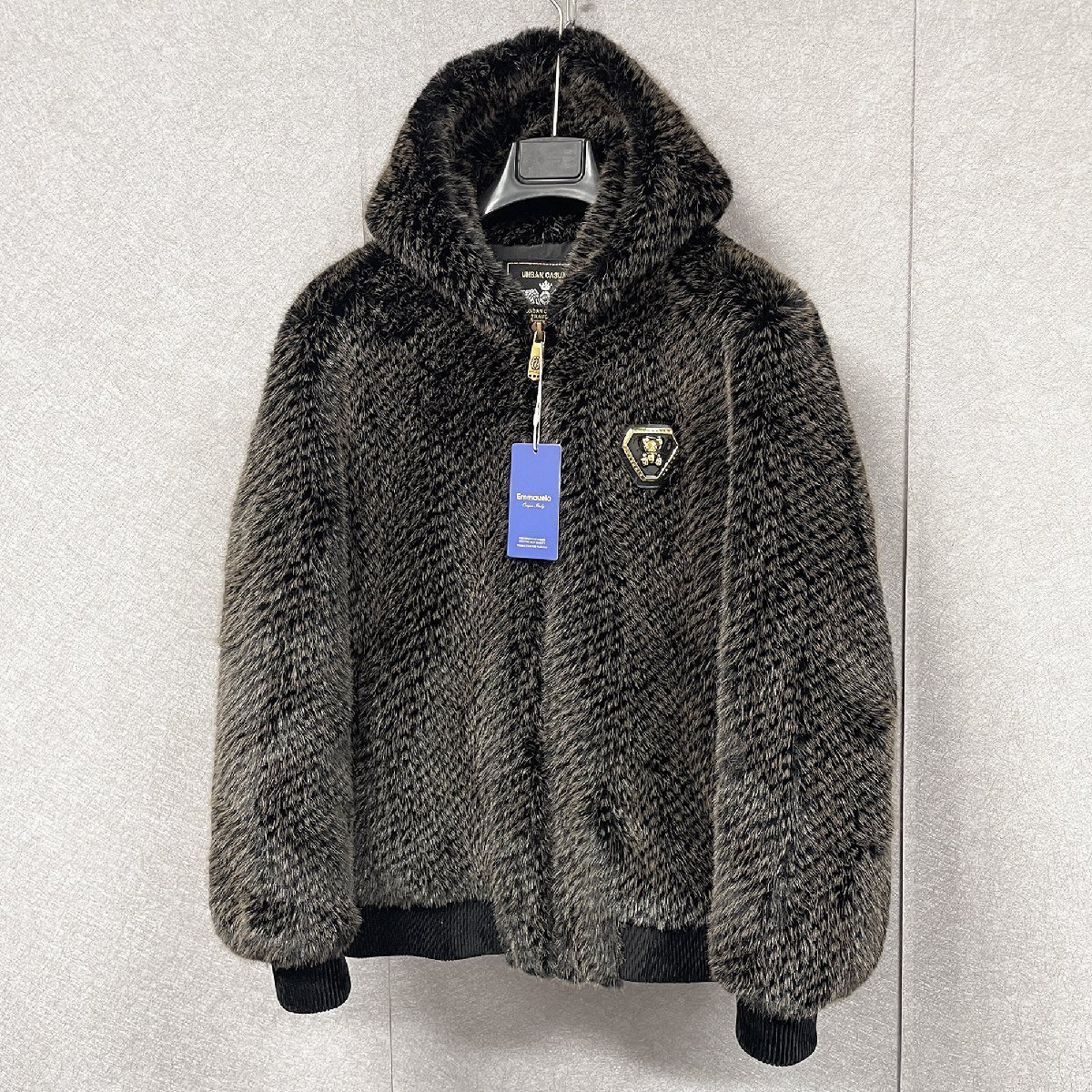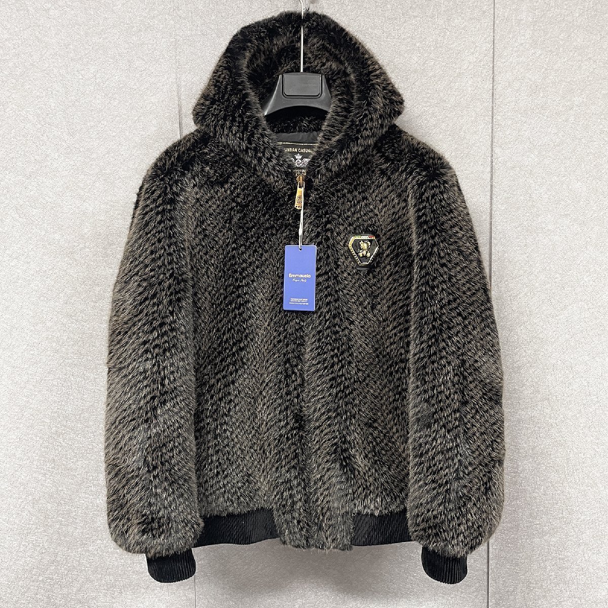 豪華ミンク/カシミヤ混・毛皮ファーコート 定価5万◆Emmauela・イタリア・ミラノ発◆極地防寒 暖かい 艶 クマ ジャケット 真冬 L/48サイズ