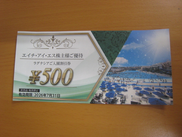 「エイチアイエス HIS 株主優待」 ラグナシア入園割引券 500円割引【1枚】※最大2500円割引 / 有効期限2026年7月31日