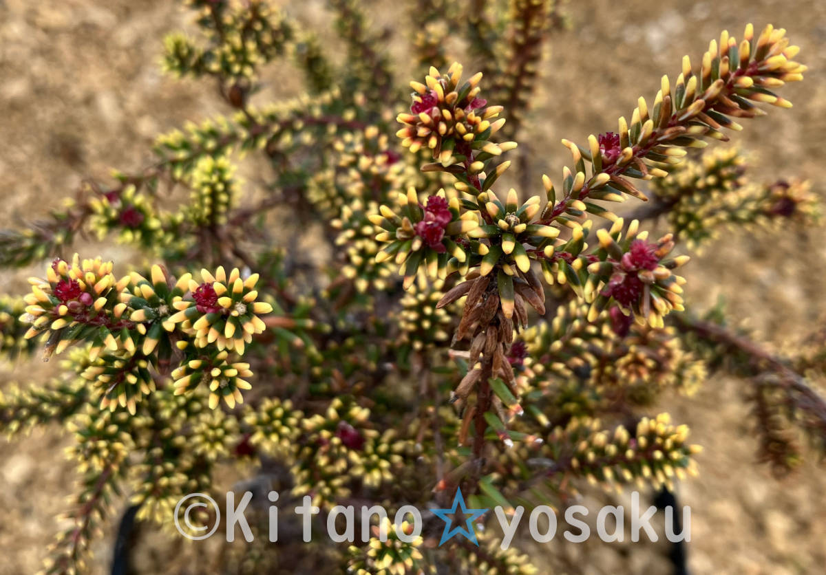 斑入り岩高蘭(フイリ・ガンコウラン)◇ツツジ科 3.5寸ポリポット栽培