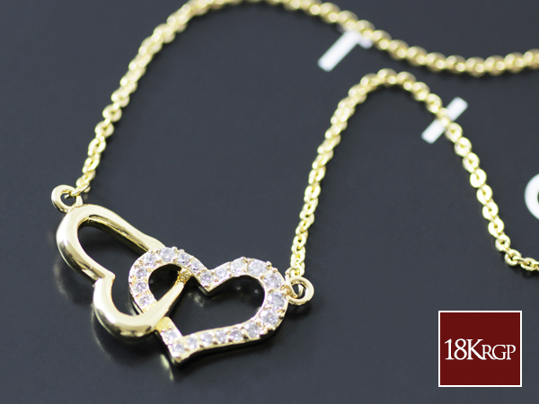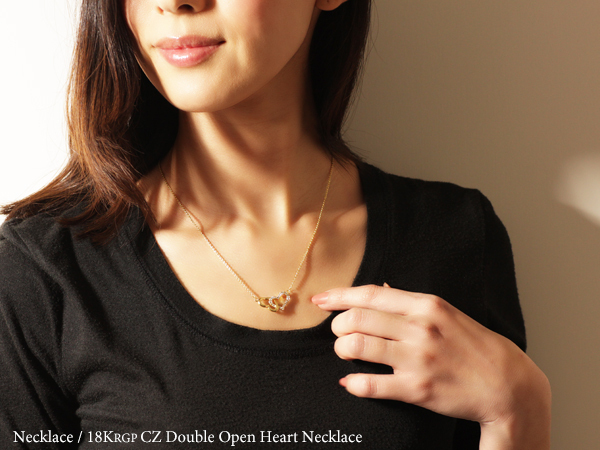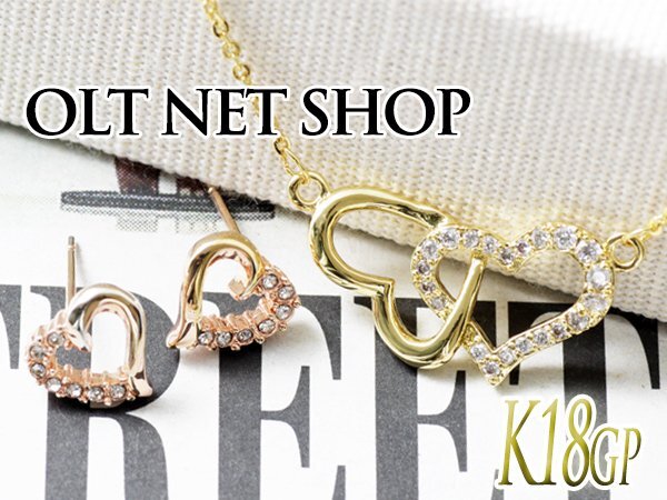 ★セット★ K18GP CZダイヤ オープンハート ネックレス&ピアス