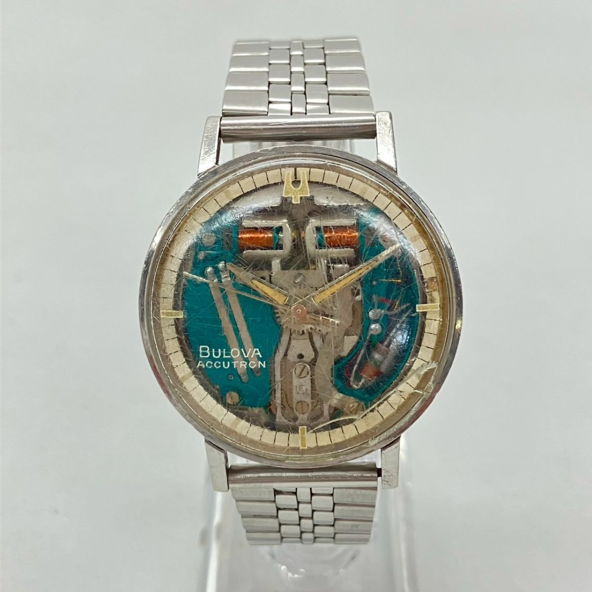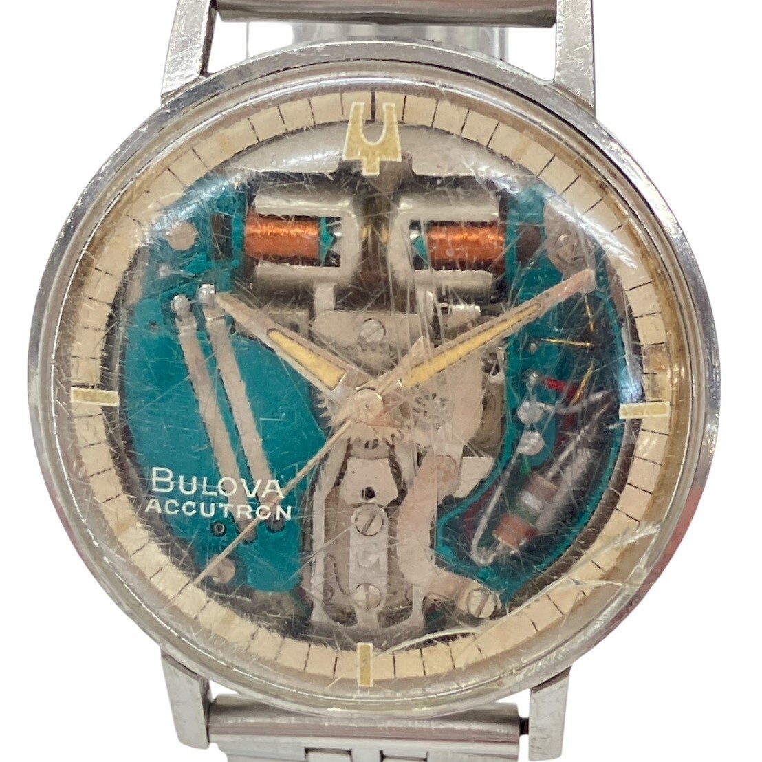 取り扱っている商品は未使用・未開封も含め、全て一度は人の手に渡った一点ものの中古・ジャンク扱いでの商品です。 当方素人ですので肉眼で確認できる簡易的な検品、採寸、および簡易梱包となります。 ※稼働の記載につきましては秒針等の確認のみとなり、全体の動作を保証するものではございません。 また、出品時の中古品の動作状況となりますので、予めご了承の上でご入札ください。 不動の表記につきましてはクォーツ式のムーブメントの場合、動作未確認の状態となります。 電池交換後、不具合があった場合でも返金、返品の対象とはなりませんので、予めご了承くださいますようお願い致します。 細かな日差、オーバーホール状況、社外パーツの使用に関しては保証しかねますので、ご理解いただけた上でのご入札をお願い致します。 上記を踏まえた上で中古品、ジャンク商品として出品させていただいておりますので、全てご理解いただけた上でのご入札をお願いいたします ------------------------------------------------------------------------- 【メーカー】 BULOVA 【モデル名】 ACCUTRON Spacevie 【型番】 M6 【シリアル】 2062 【サイズ】 直径約3.5cm 腕回り約16cm 【付属品】 画像参照 【稼働状態】 稼働 【その他状態】 リューズ動作 時間:OK 日付:- 曜日:- 風防キズ・ヒビあり ------------------------------------------------------------------------- 画像にあるものが全てです。 他詳細は画像にてご判断ください。 ※目立つ傷や汚れを中心に写真を撮っておりますが、画像に写りきっていない傷等がある場合もございます。予めご了承ください。 ※商品を多数出品している関係で、稀に商品説明や画像に誤りがある場合がございます。予めご了承ください。 こちらのページをご覧いただく際は、商品説明文と掲載している画像の全てを確認いただいた上でご入札ください。 | |||||||