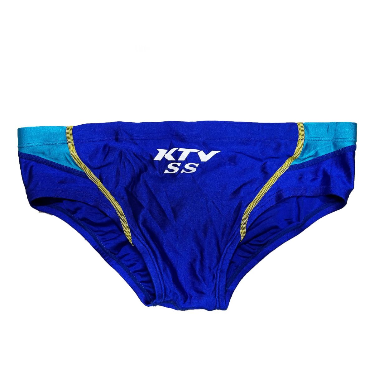 34 ミズノMIZUNO男子競泳水着★(XO)★競パン★KTVスイミングクラブ専用★光沢ブルー・サイドライン切替