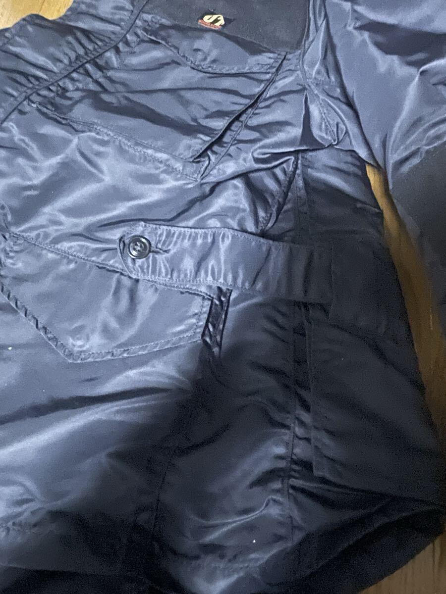 フードを内蔵したスタンドカラーや、胸とウエストのポケットデザインなど、M-65ならではディテールを用いていますが、フリーホイーラーズならではのアレンジが随所に施されているモデルです。