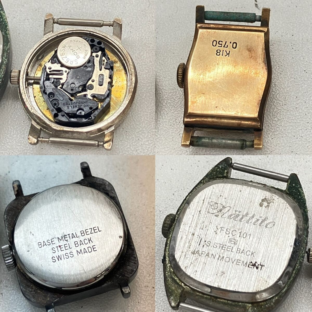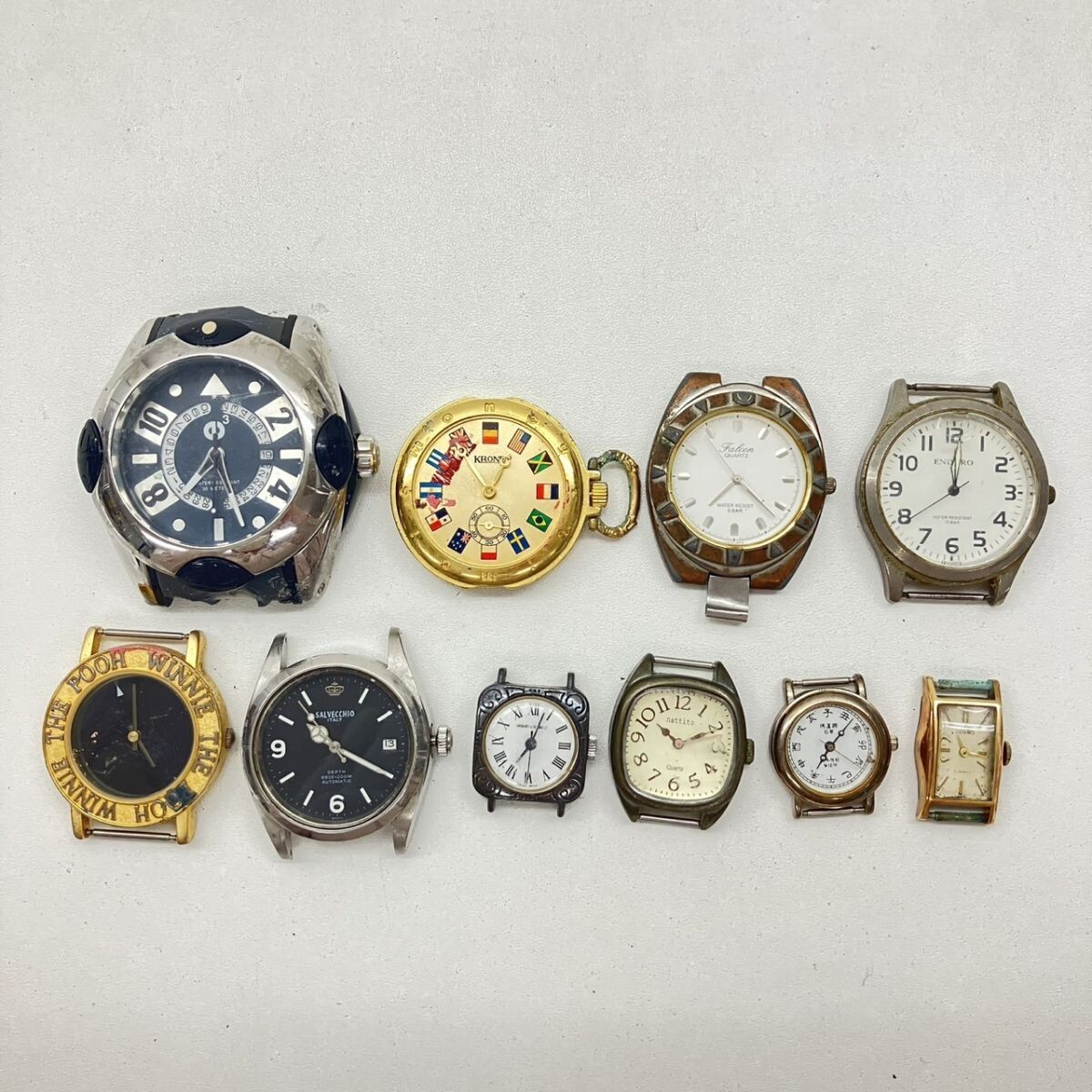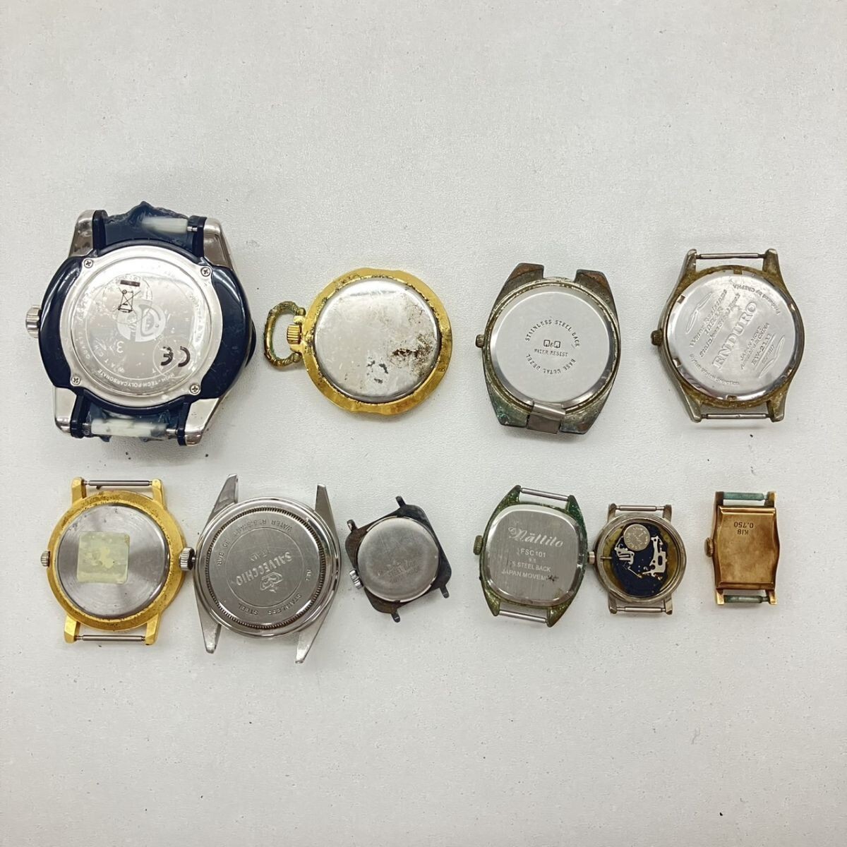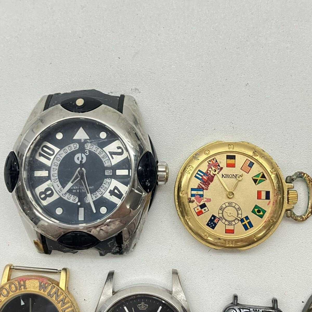 取り扱っている商品は未使用・未開封も含め、全て一度は人の手に渡った一点ものの中古・ジャンク扱いでの商品です。 当方素人ですので肉眼で確認できる簡易的な検品、採寸、および簡易梱包となります。 こちらの商品は全てジャンク商品となるため、落札後いかなる動作不良がございましても保証いたしかねます また、何点かをまとめて出品させておりますが、その中の1点だけ欲しいといったご希望はお受けできませんのでご了承ください ジャンクといえど、過去人気だったり多くの方に使われてきた商品になります、是非部品取りや研究用としてお求めください ------------------------------------------------------------------------- 【付属品】 画像参照 【その他状態】 傷や汚れあり 風防欠損・ヒビ・傷あり 裏蓋欠損あり ------------------------------------------------------------------------- 画像にあるものが全てです。 他詳細は画像にてご判断ください。 ※目立つ傷や汚れを中心に写真を撮っておりますが、画像に写りきっていない傷等がある場合もございます。予めご了承ください。 ※商品を多数出品している関係で、稀に商品説明や画像に誤りがある場合がございます。予めご了承ください。 こちらのページをご覧いただく際は、商品説明文と掲載している画像の全てを確認いただいた上でご入札ください。 | |||||||