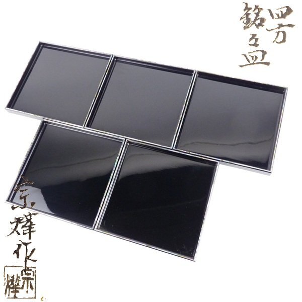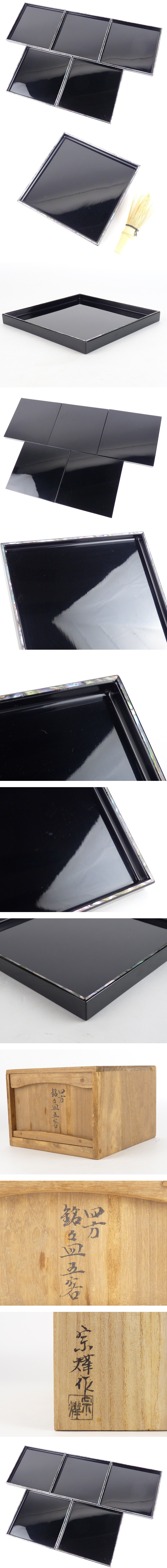 【扇屋】宗燁 作 螺鈿細工「四方銘々皿」5客 共箱 約16㎝ 茶道具 D1