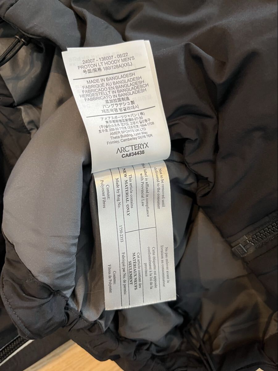 アークテリクスは今でこそ羽毛ダウンジャケットを展開していますが、数年前まではインサレーションの全てが化繊でありその長い経験と高い技術力から現在も化繊中綿においては先を行くスペックです。アークの化繊と言えばアトムシリーズ、プロトンシリーズがありますが、これらシリーズ全て中綿はコアロフトです。プロトンやアトムは保温性は保ちつつも厚みを約50%削減の「コアロフトコンパクト」へアップデートされてます。コアロフトは濡れても保温性を失わず、汗や湿気などによるロフトの低下が無く、常に保温し続けるアークテリクスの技術が詰め込まれた高機能中綿ですが、プロトンLTはより通気性のあるアウターシェルで超高耐久性、温かいながらも蒸れを素早く逃がし保温と通気のバランスが最も優れたアクティブインシュレーションです。高通気を謳っているプロトンですが、アトムLTよりプロトンLTのほうが綿量多く重量変わらず暖かくかつ高通気により蒸れにくいです。