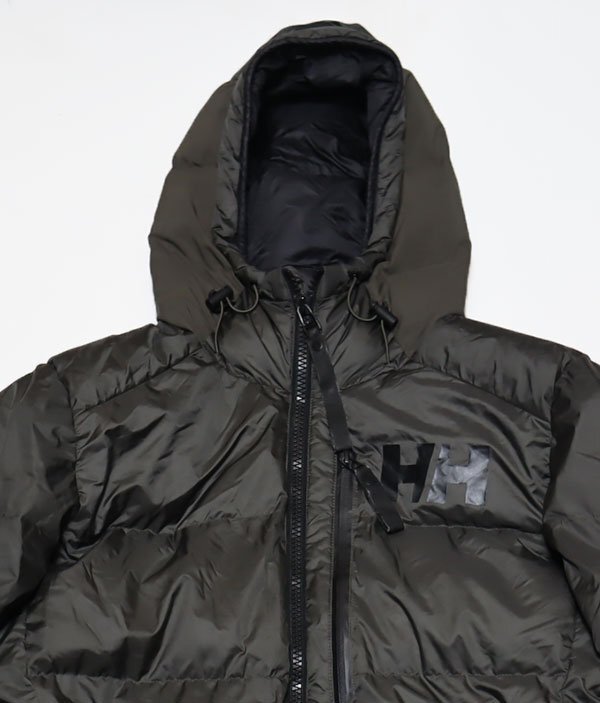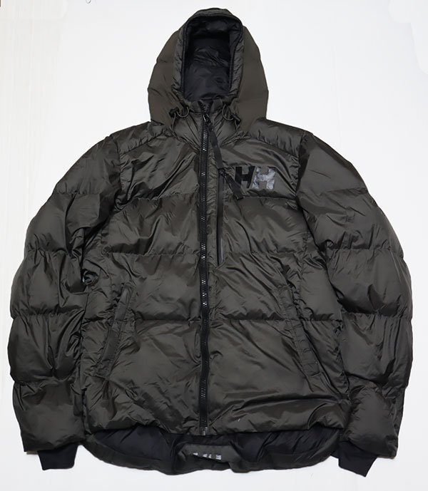 HELLY HANSENのナイロンジャケットの中綿入りのチャコールグレー系です。