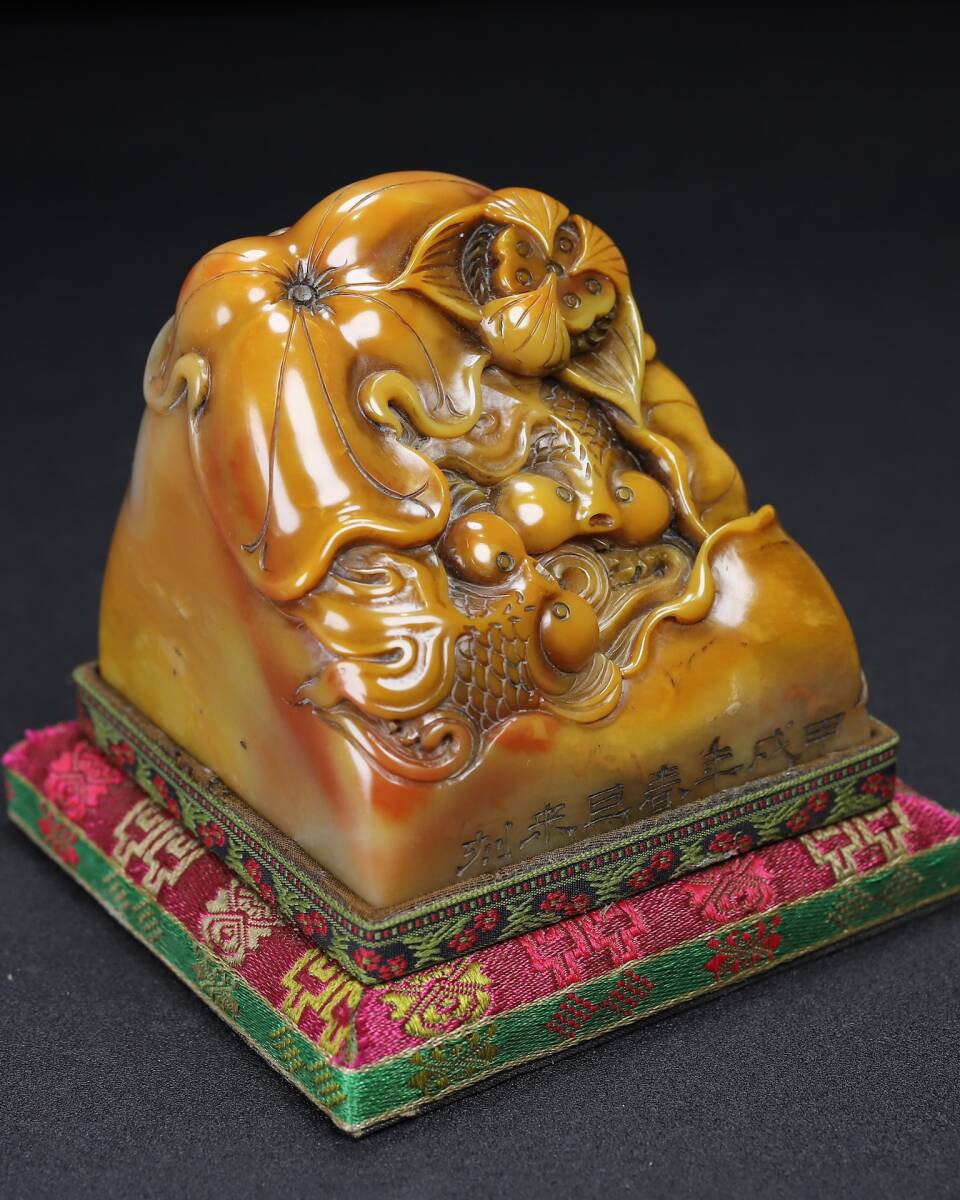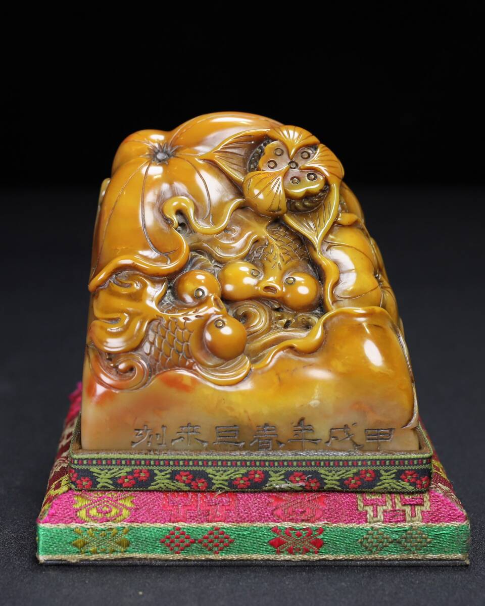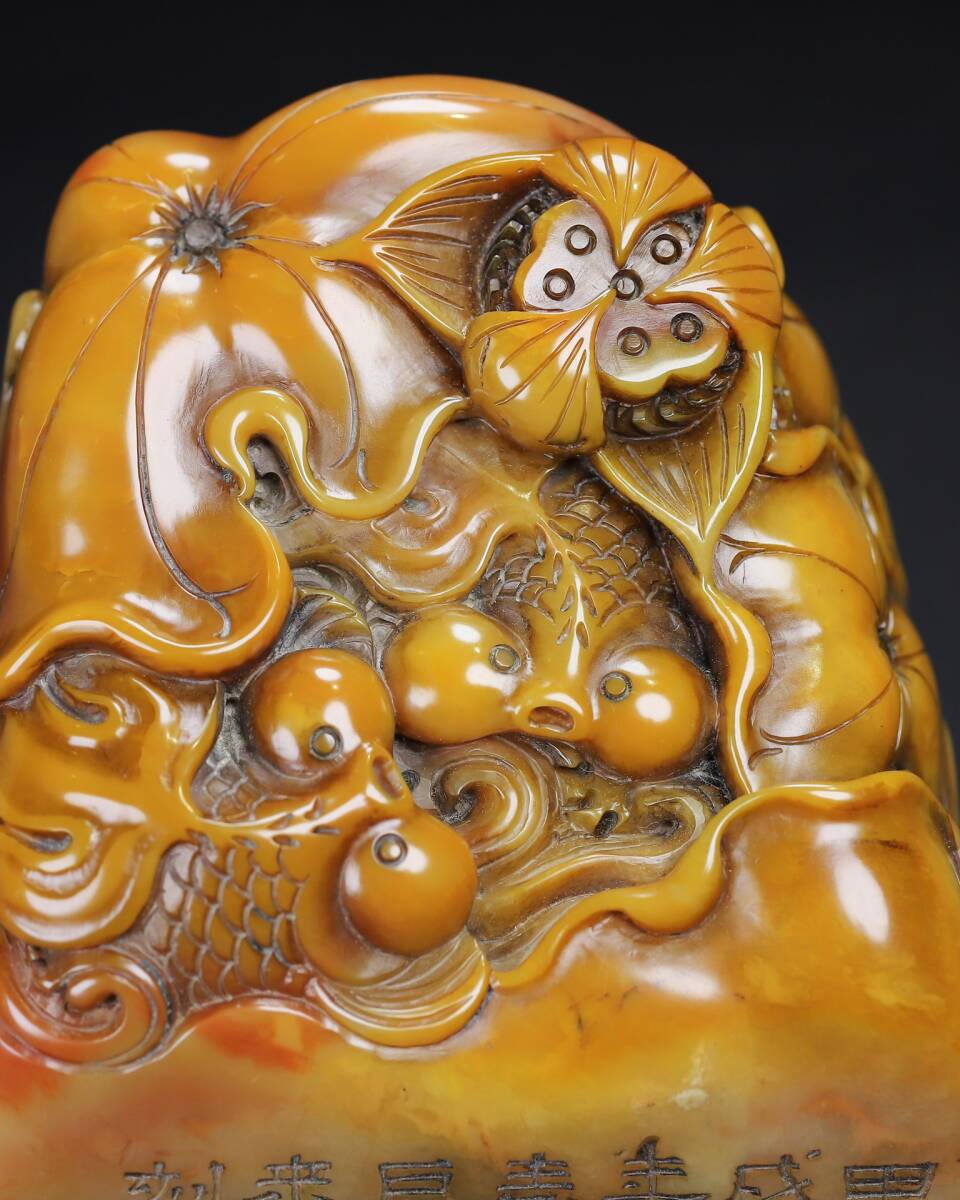 館蔵 寿山石彫 年年有余 印鑑 天然石 手彫 篆刻 古印材 極細工 中国古玩 古美味 骨董品 中国古美術 古美味 蔵出