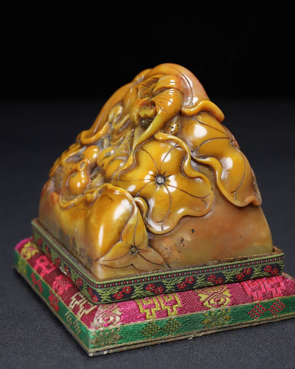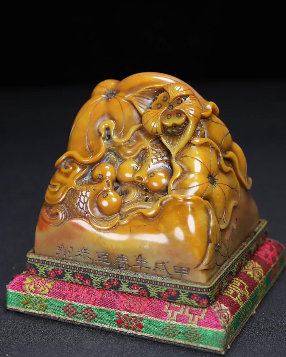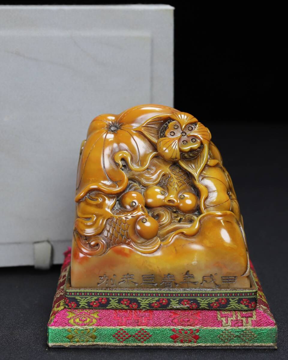 館蔵 寿山石彫 年年有余 印鑑 天然石 手彫 篆刻 古印材 極細工 中国古玩 古美味 骨董品 中国古美術 古美味 蔵出