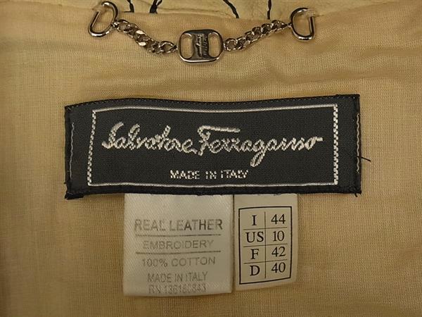 1円 ■美品■ Salvatore Ferragamo フェラガモ ヴァラ レザー 刺繍 ジャケット アウター 上着 サイズ44 洋服 アイボリー系 FR2442