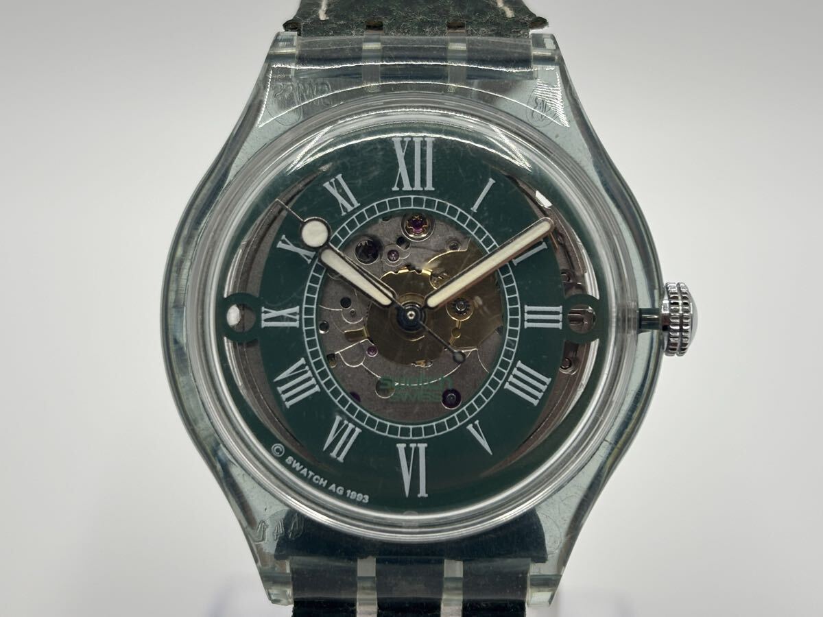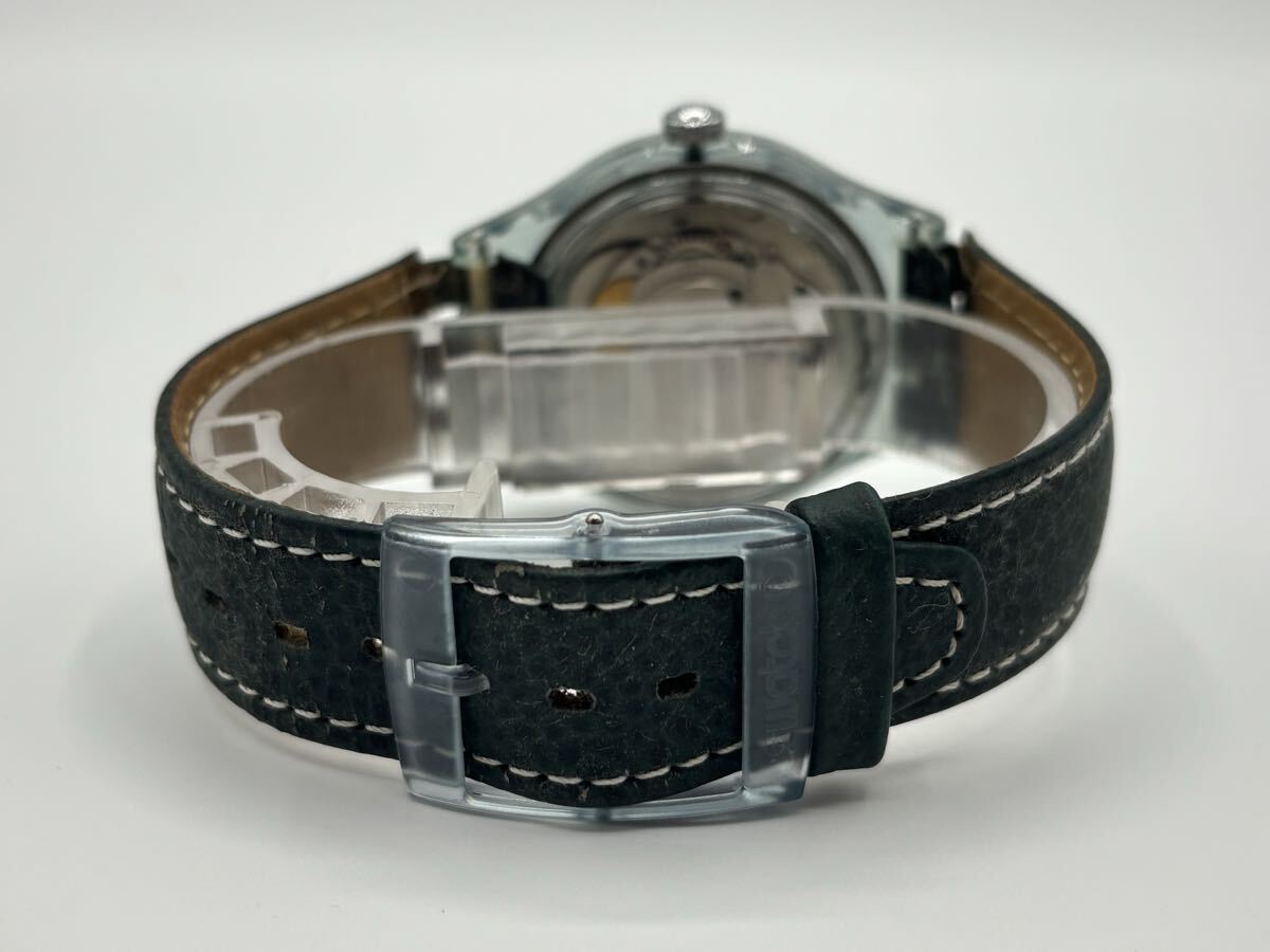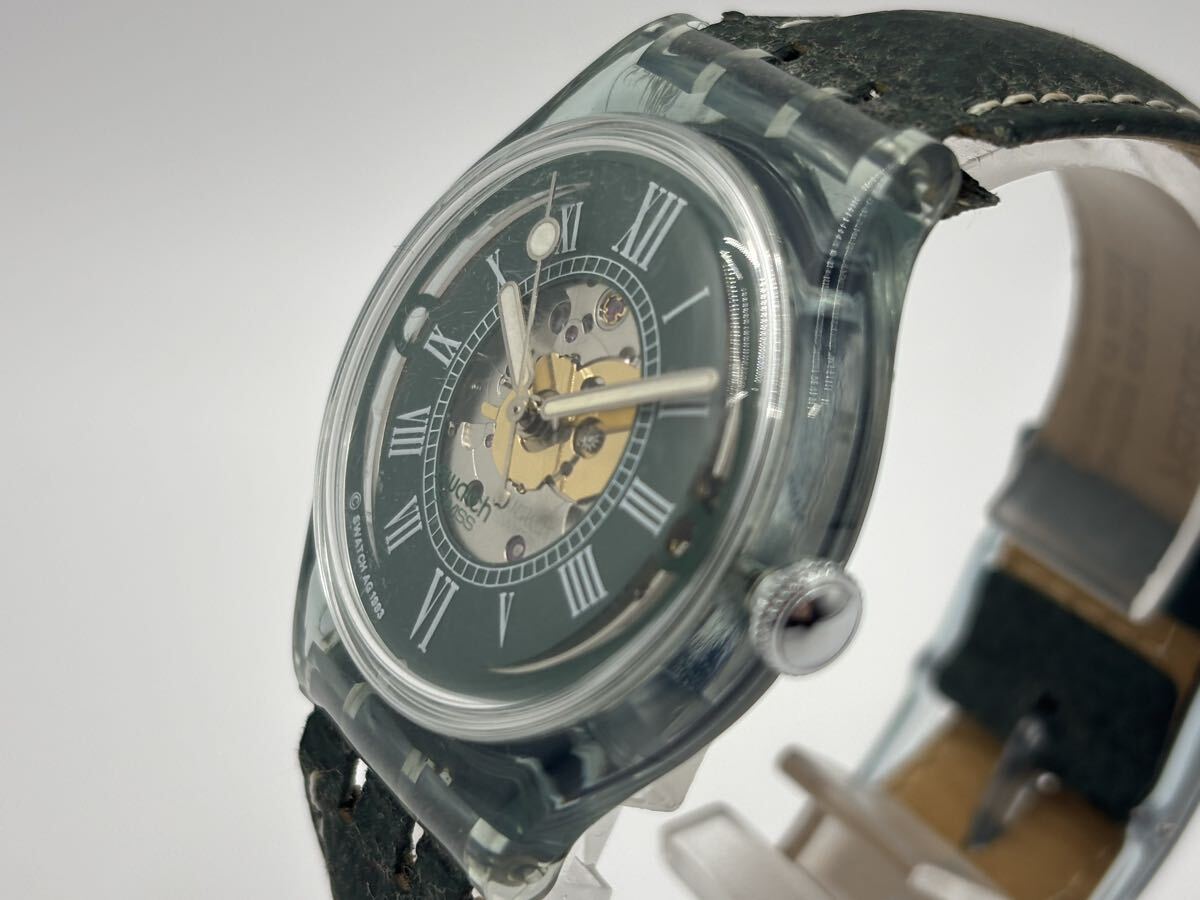 | Swatch スウォッチ automatic メンズ腕時計 ウォッチ グリーン文字盤 オートマチック ローマン 裏スケルトン 稼働 箱付 中古 | ||||||||||||||||||||