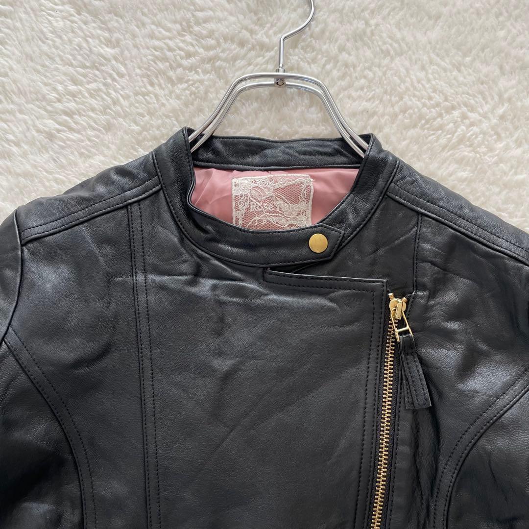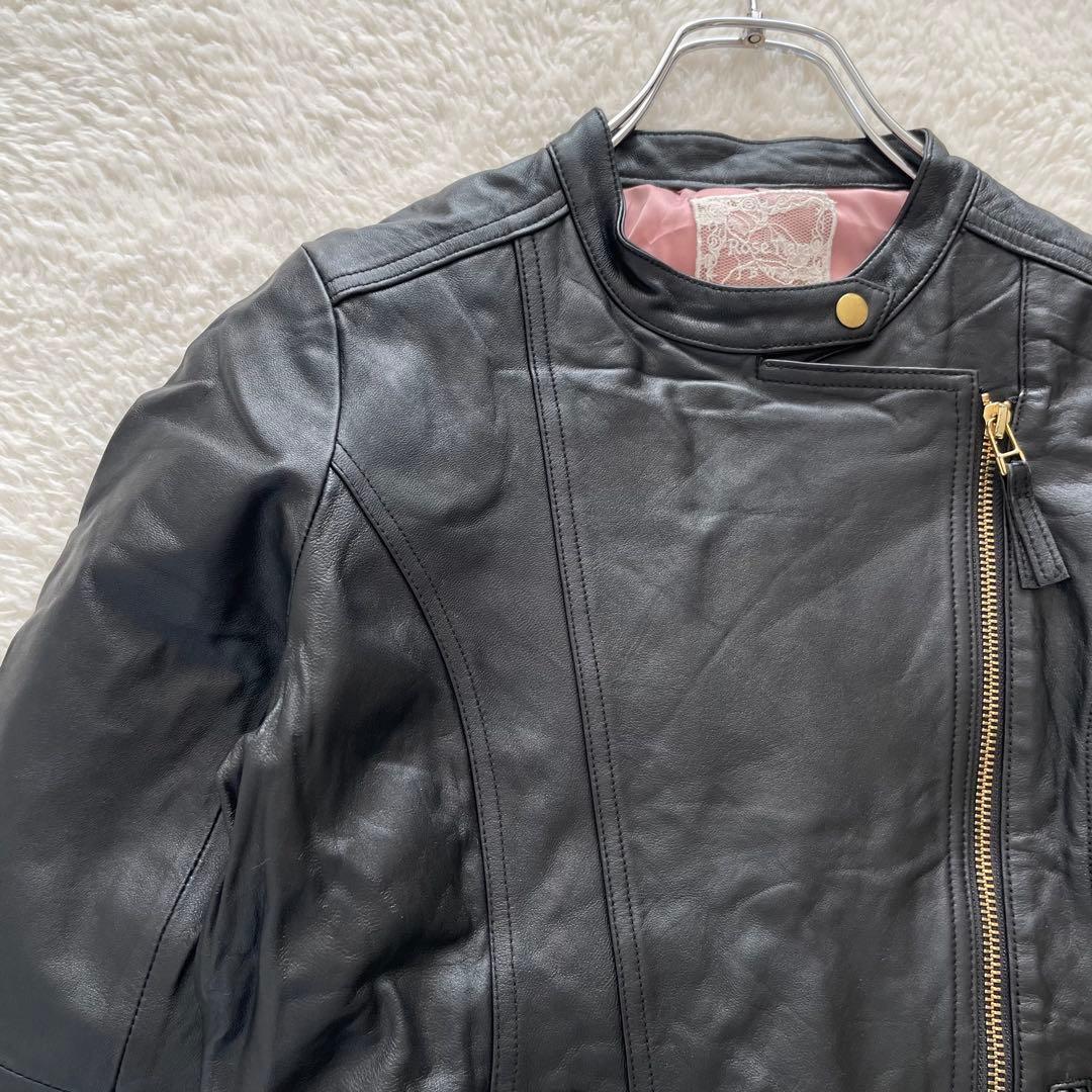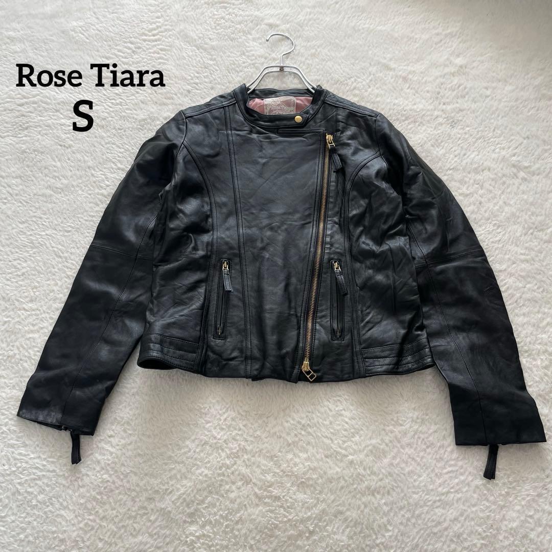 【ローズティアラ 】 ラムレザー ライダースジャケット ブラック 黒 S相当 6A619C