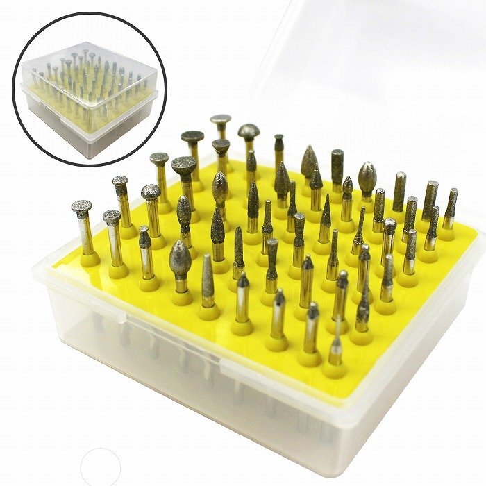50本 セット ダイヤモンドバー ルーター 切削 ダイヤモンド ビット 研磨 仕上げ用 丸軸 3.1mm 1/8 シャンク 平型 凸型 複数型