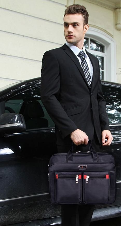 2WAY ビジネスバッグ メンズ ポケット多 書類カバン 7998477 ブラック×レッド 新品 1円 スタート