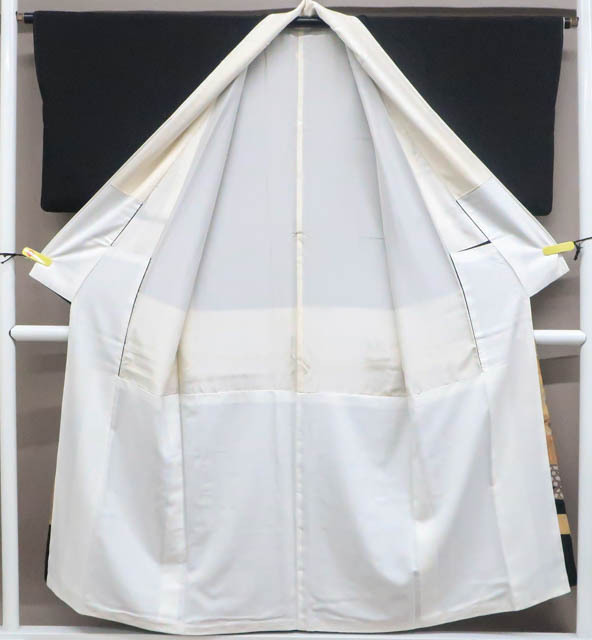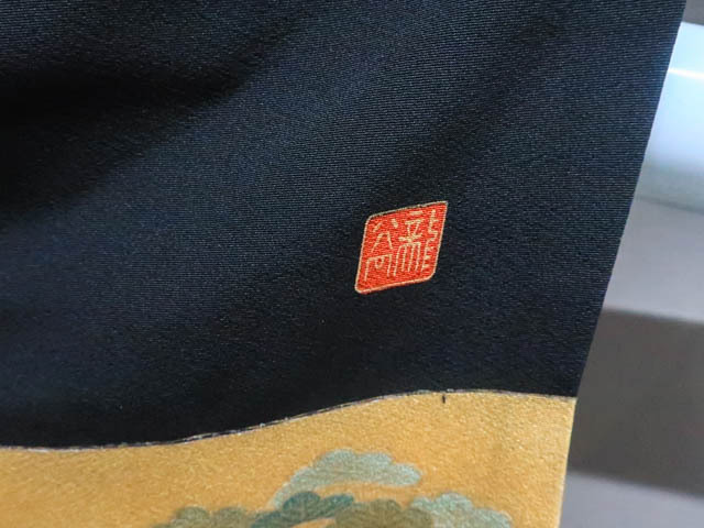 リサイクル商品のため、右袖、両袖口に薄汚れがございますが着用可能なお品です。 地色は 黒です。 1枚目の画像が近いお色かと思われます。 素材は正絹です。 |