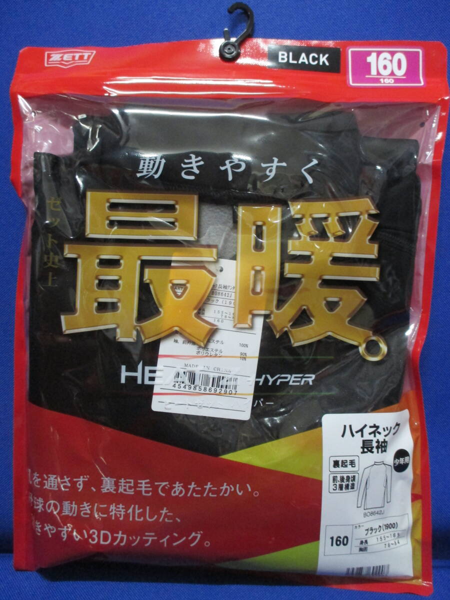 送料無料◆アンダーシャツ◆ハイネック◆ブラック◆160◆保温◆ゼット◆即納◆限定商品◆裏起毛◆防寒◆ジュニア◆野球◆BO86421◆長袖