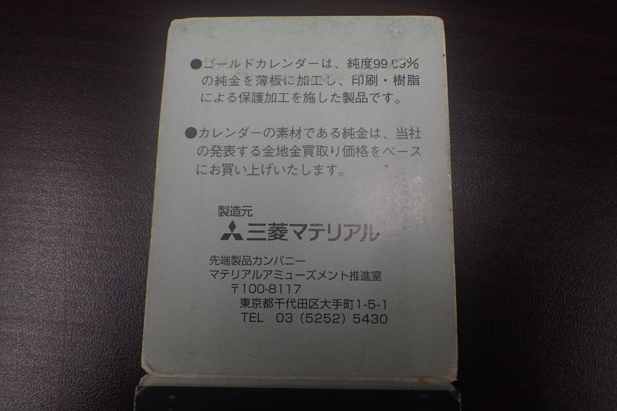MITSUBISHI 三菱マテリアル製 0.5g 純金カレンダー FINE GOLD 999.9 カード カレンダー部分外し 総重量:約1.3g 激安1円スタート