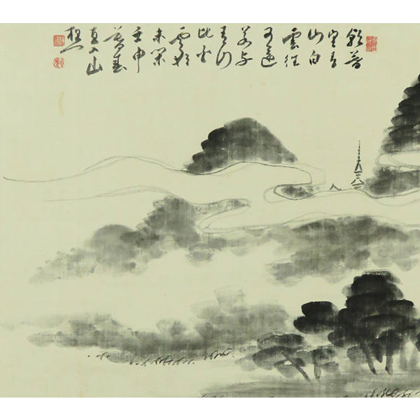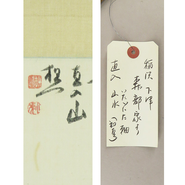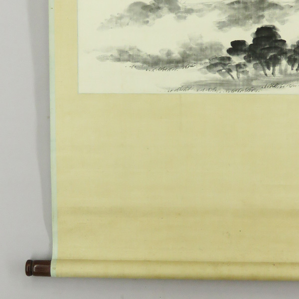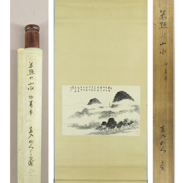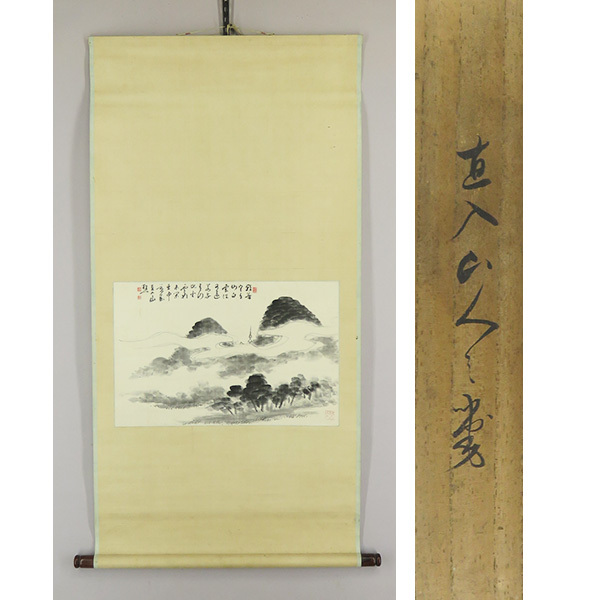 B-4348【真作】文人好み! 田能村直入 肉筆絹本 山水図 横物 掛軸/南画家 豊後 師・田能村竹田 京都府画学校校長 煎茶掛 書画