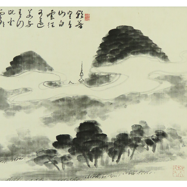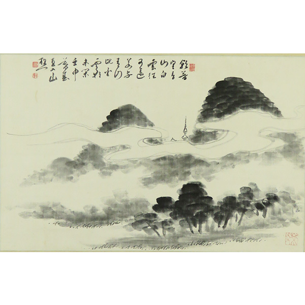 絹本 山水図。横物。印刷ではありません。