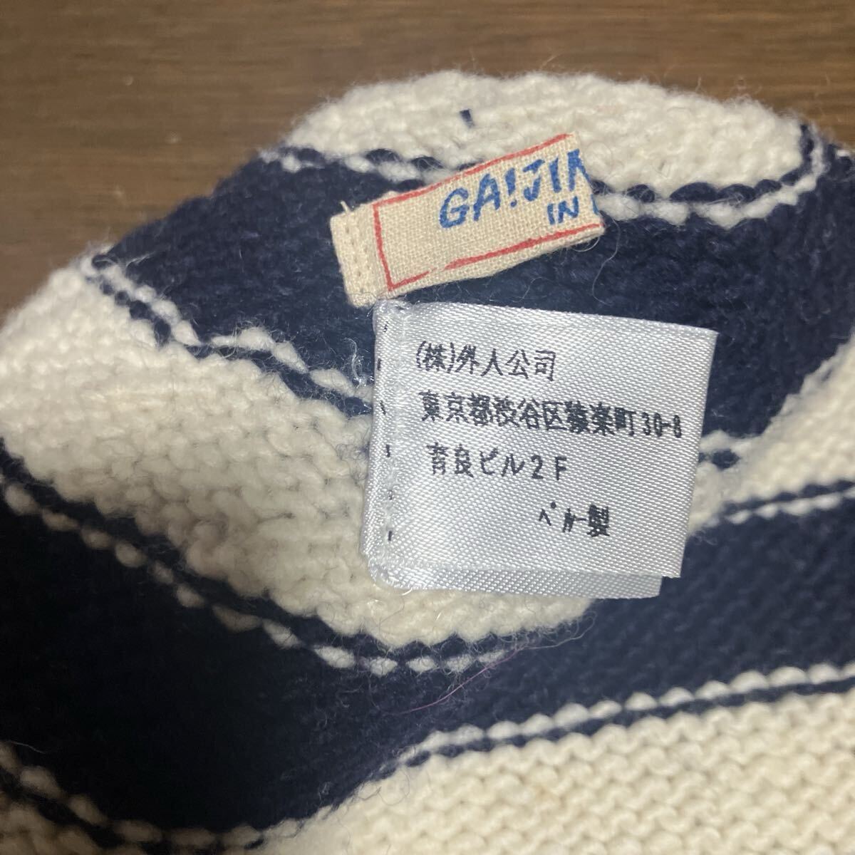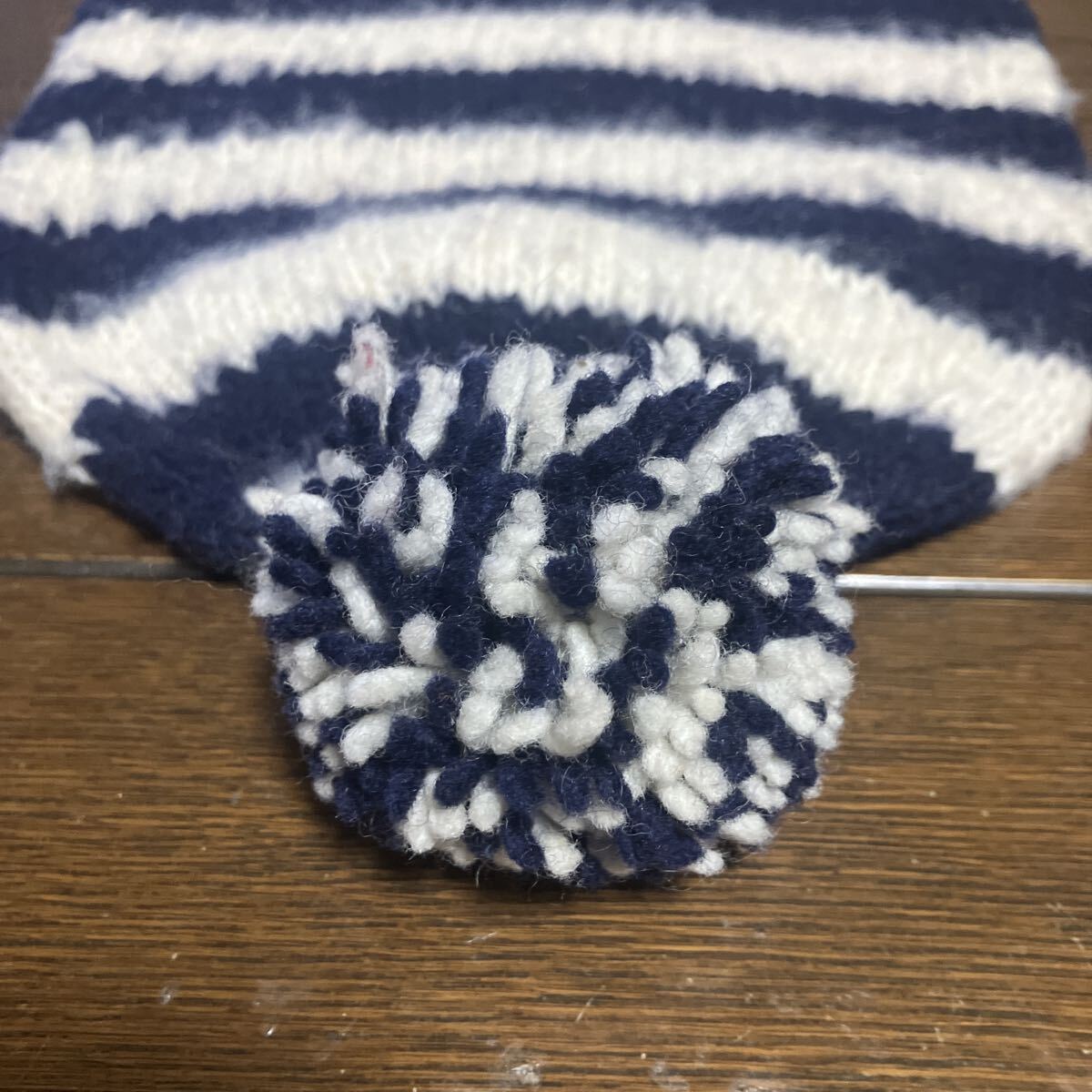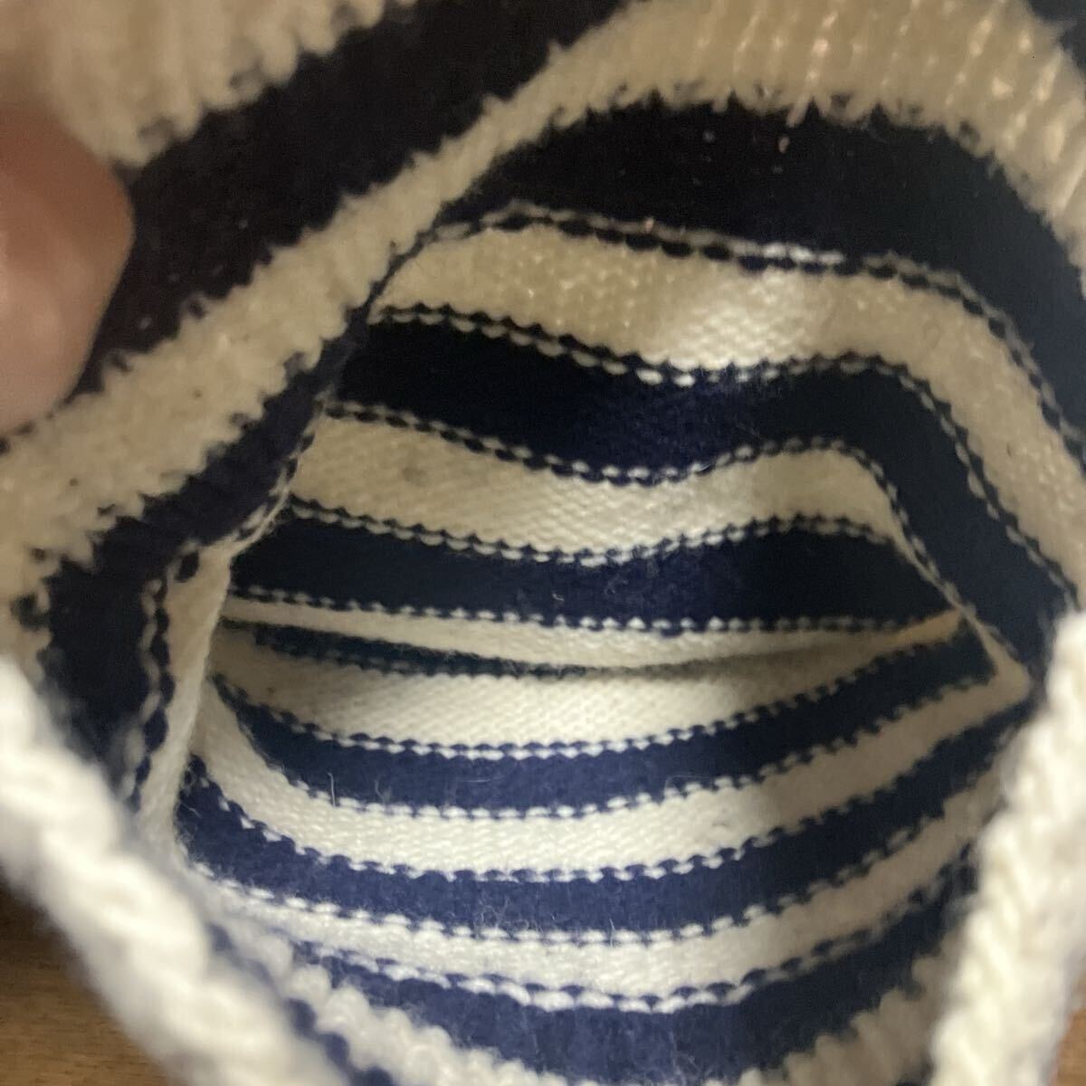 ホワイトxネイビーのボーダー柄、軽くブラシを掛けて起毛処理がされて居る為モヘアの様な毛羽立ちが見た目ソフトに見えます。