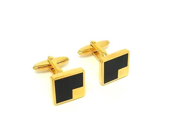 ■美品■ dunhill ダンヒル カフリンクス カフスボタン アクセサリー メンズ ビジネス 紳士 ブラック系×ゴールド系 DK4420