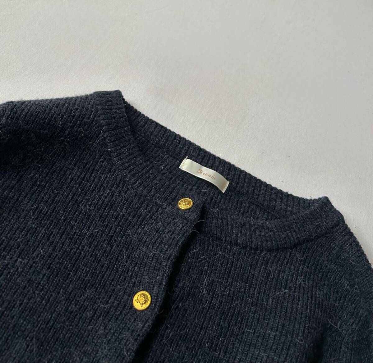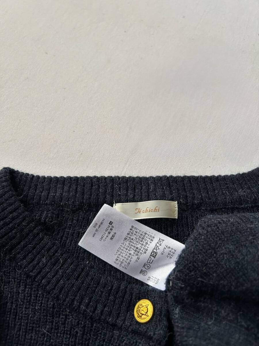 テチチ Te chichiの、定番アイテムとして活躍してくれる金ボタンの可愛いニットカーディガンです。 色 ネイビー フロントボタン開閉 サイズ表示 M 実寸 着丈55cm 胸囲40cm 肩幅33cm 袖丈54cm くらい (平置きにて計測しております。) 素材 アクリル60% ナイロン23% 毛11% アルパカ6% *画像でコーディネートした他アイテムは付属致しません。 中古品とお考え下さい。 特に目立つ汚れやキズはありません。 また、写真画像はモニター環境や撮影状況などに応じて、実際の商品とお色と少し異なる場合があります。よろしくお願いいたします。 ダメージの見落としがある場合はご容赦ください。 他、気になる点はご質問下さい。 なお、落札後のキャンセルはできません。 発送後はノーリターン、ノークレームでお願いします。 オークション終了後、2日以内にご連絡が取れる方のみご入札下さい。 万が一連絡が遅くなってしまう場合は、オークション終了前に、必ず質問欄より お問い合わせ下さい。 | ||||||||
