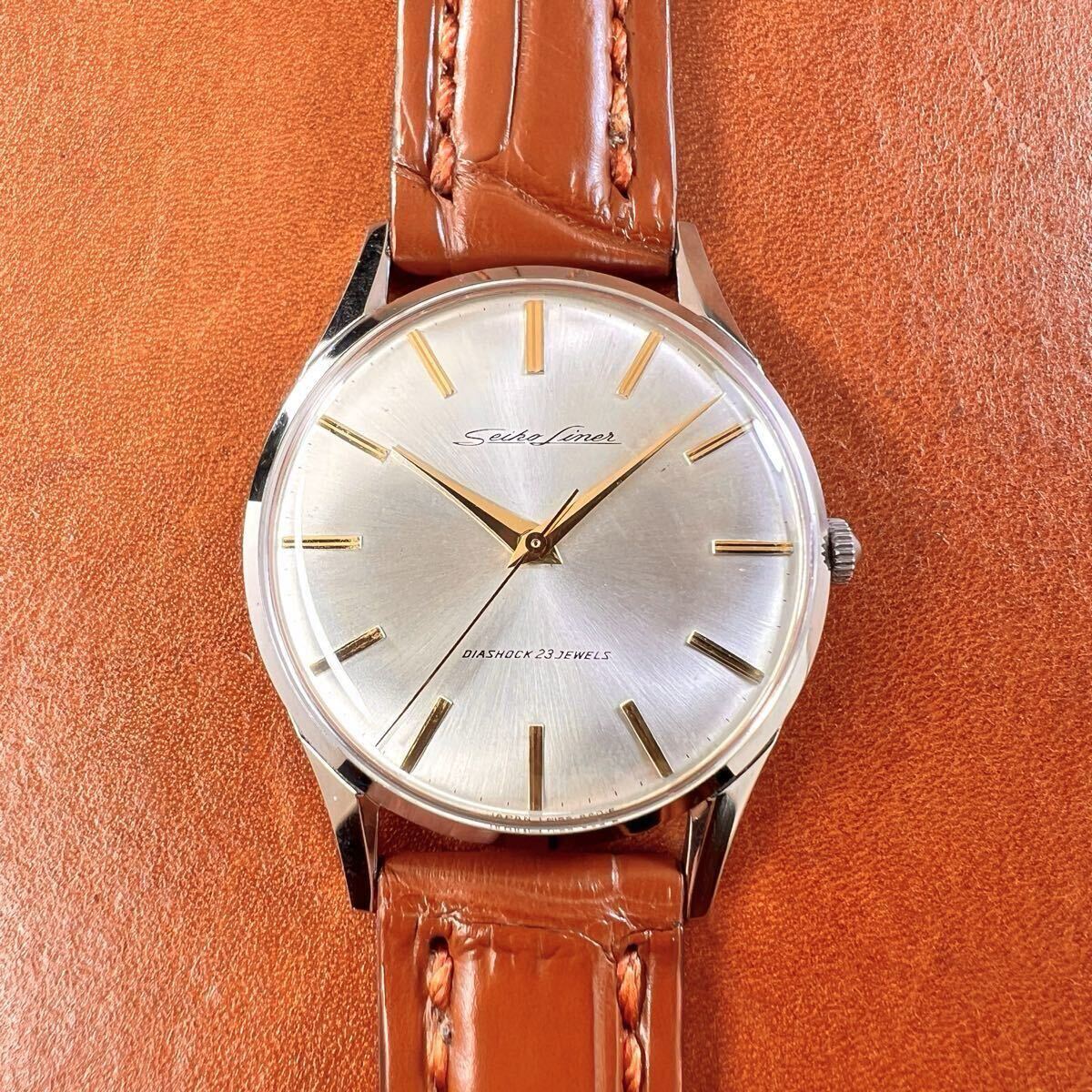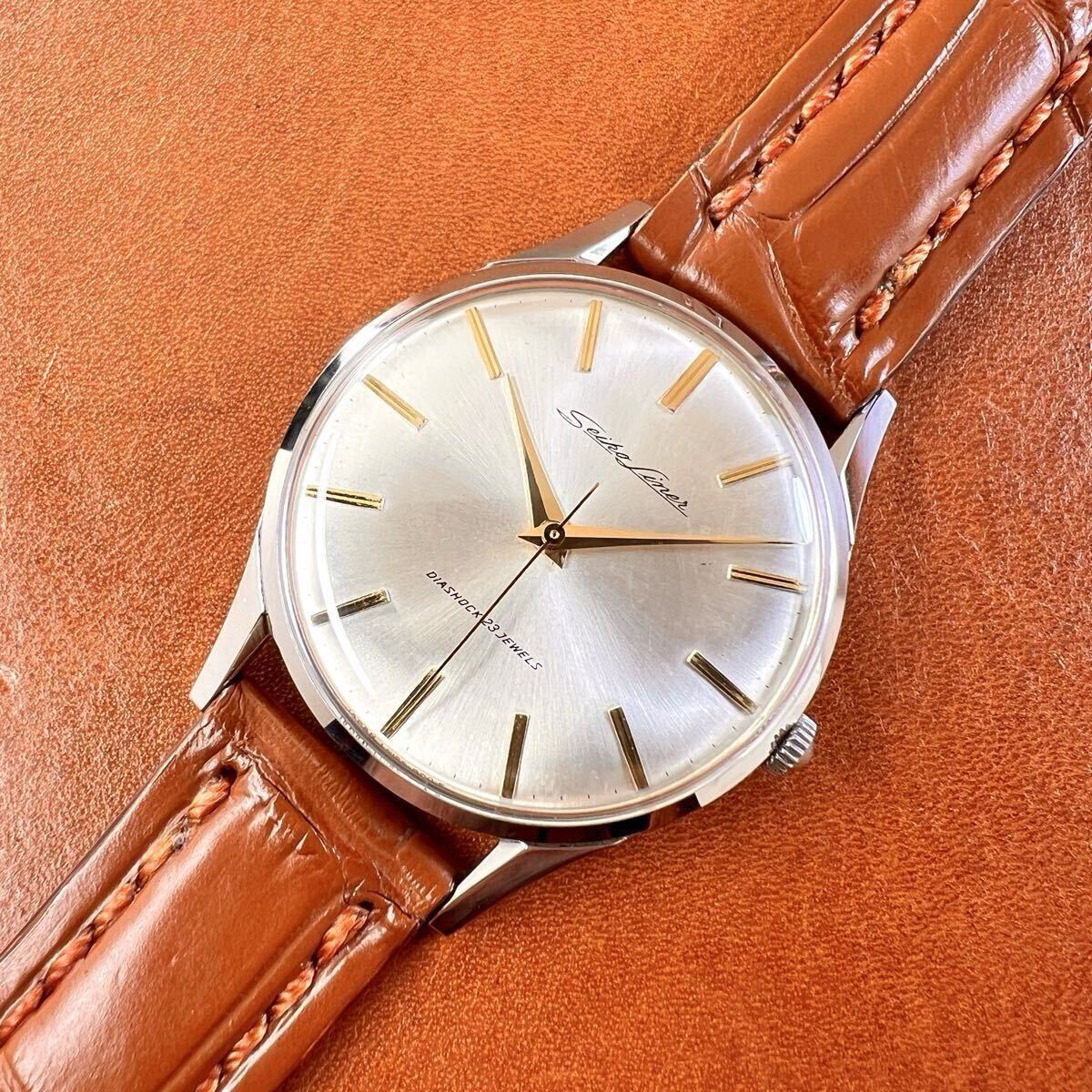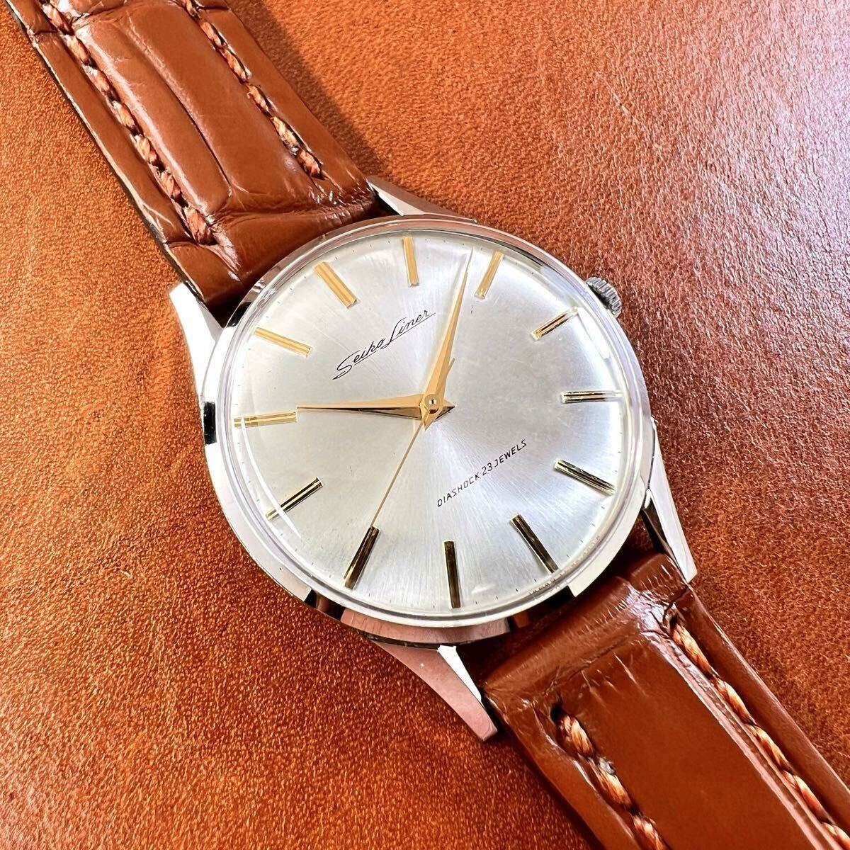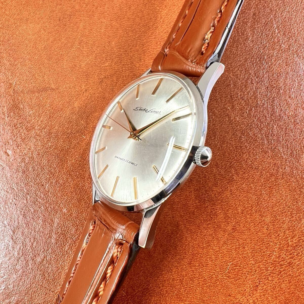 OH済! 極上美品! SEIKO Liner 23石 クロコダイル本革 手縫いベルト Dバックル付 セイコー ライナー 15006 手巻き 国産 ビンテージ 腕時計