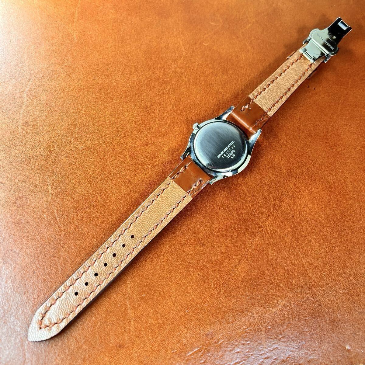 *ベルトはこの時計に合わせて最近作成したばかりの、作りたて未使用です。参考まで作成途中の写真をアップしております。