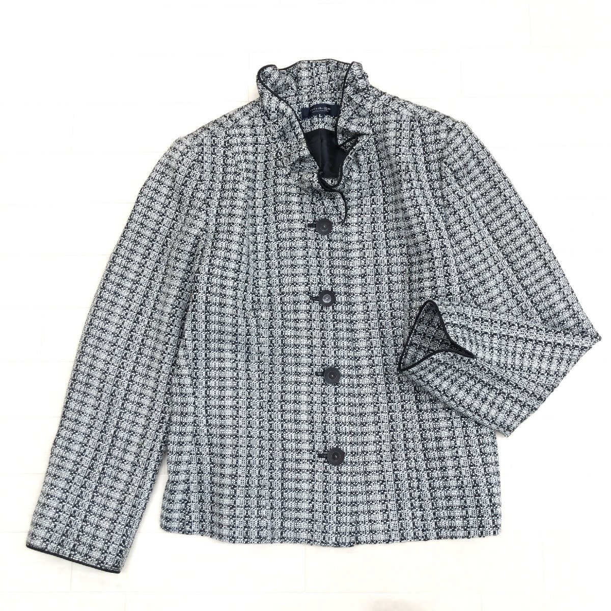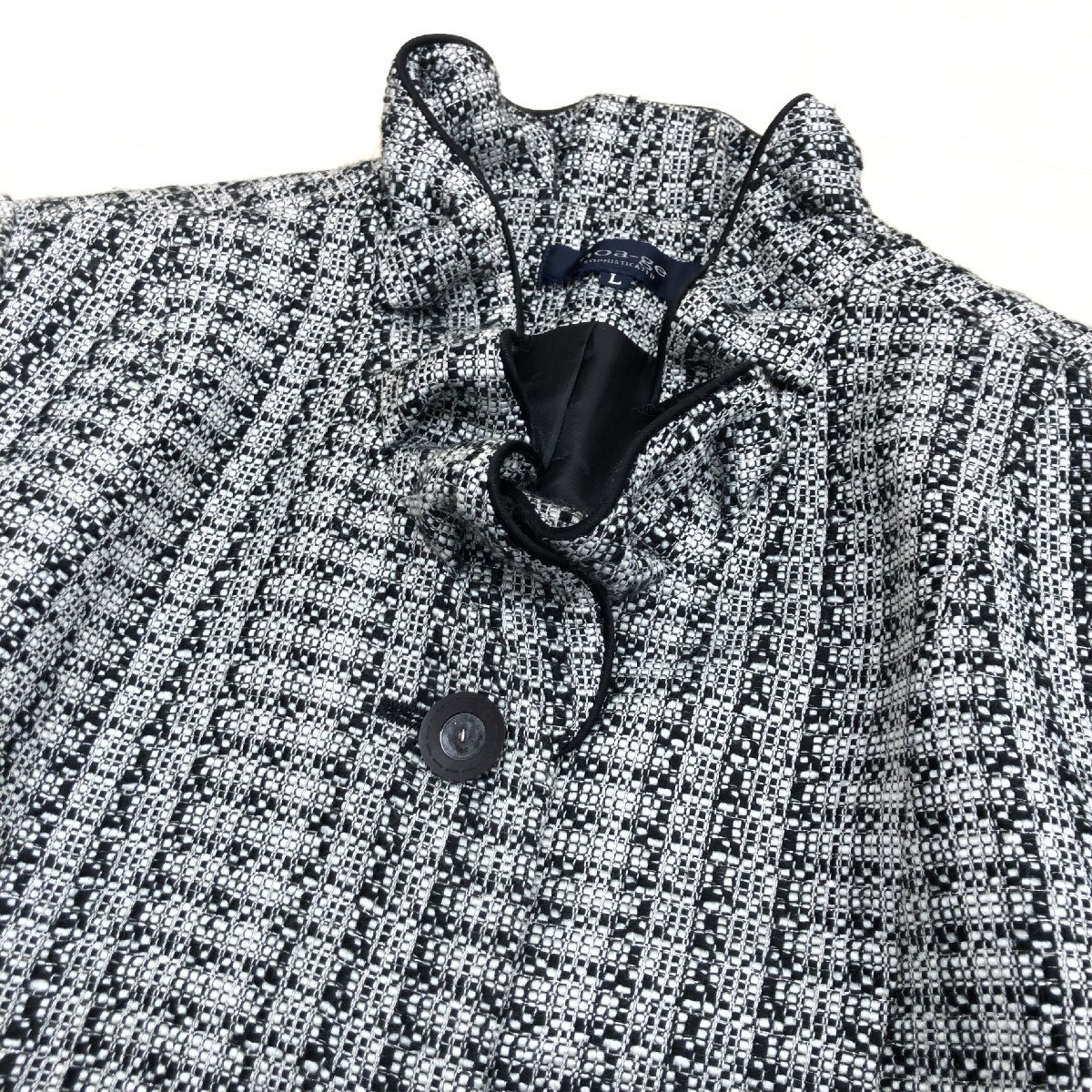 ●美品 noa-ge ノアジェ フリルカラー ジャケット L グレー系 羽織り フォーマル セレモニー レディース 女性用 婦人 一宮繊維