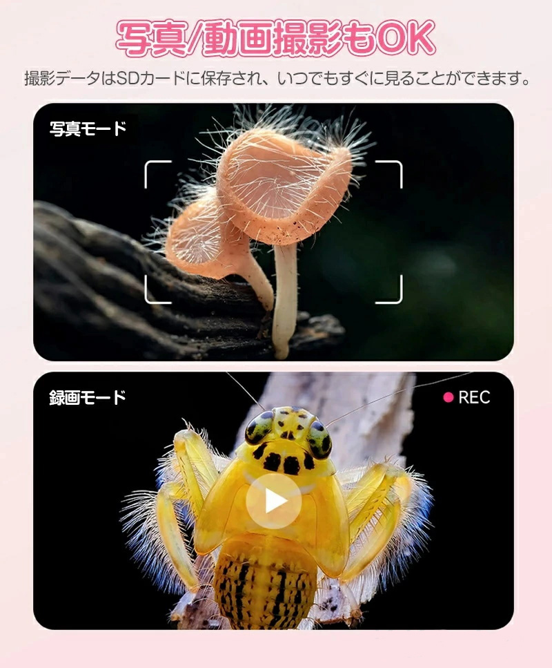 【500Xズーム】200万ピクセルと100x?500xズーム範囲を備えており、学生は小さなハエや植物から羽や髪の毛などの日常的な物体まで、さまざまな標本を詳しく調べることができます。