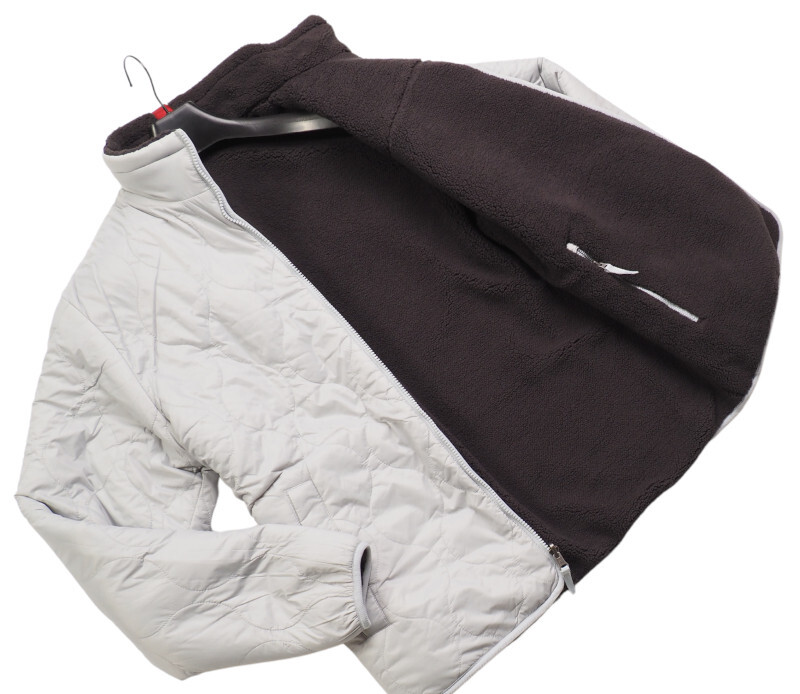 ボアフリースとナイロン中綿入りキルトデザイン生地のリバーシブル仕様のジップアップブルゾン。