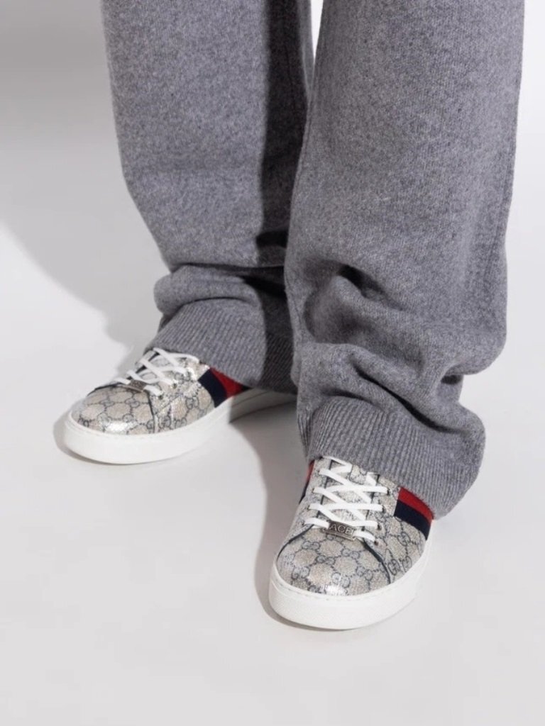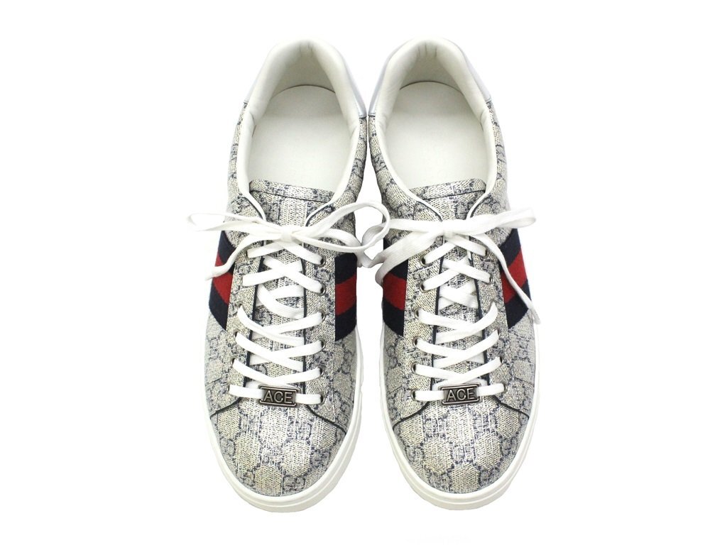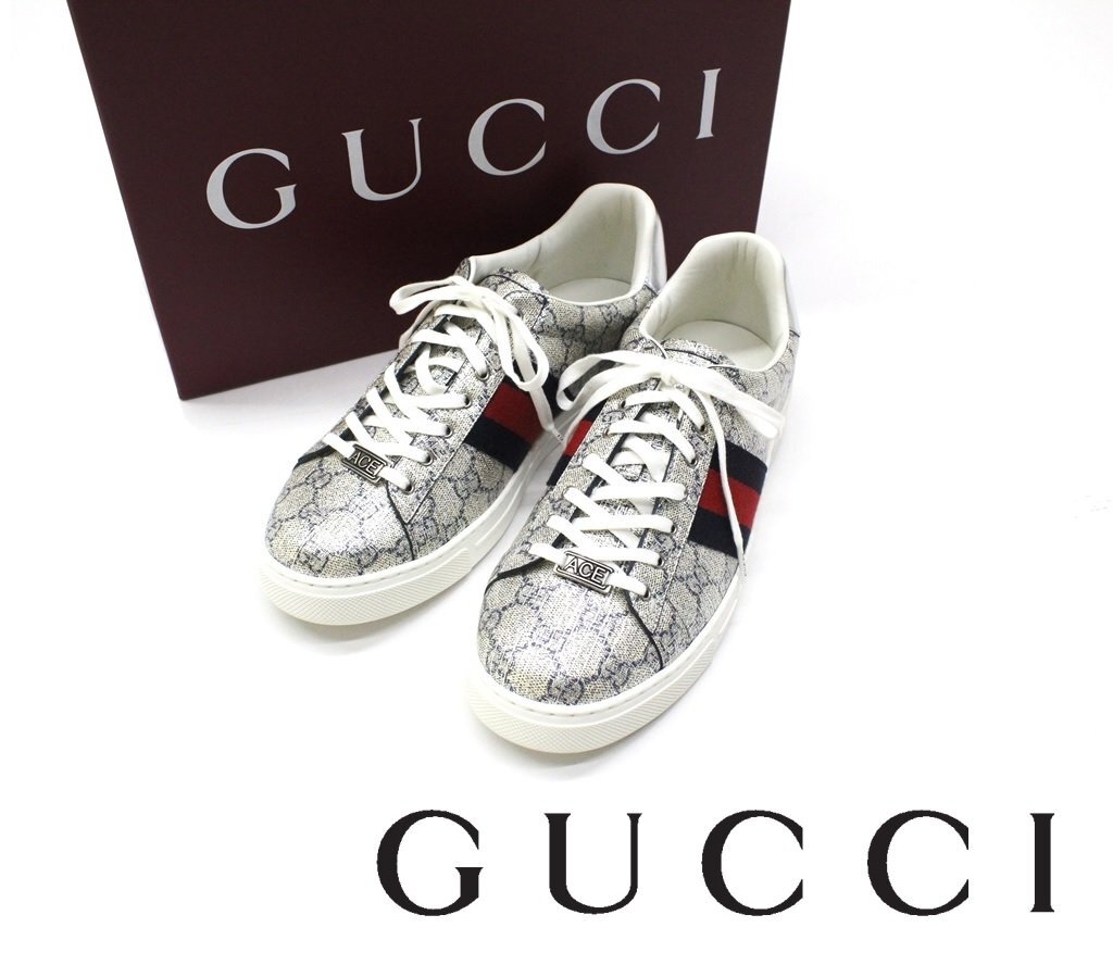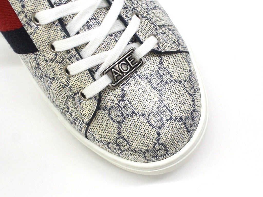 15万新品◆8=27cm◆GUCCI グッチ インターロッキングGGロゴプリント ウェブストライプ レースアップスニーカー シルバー銀