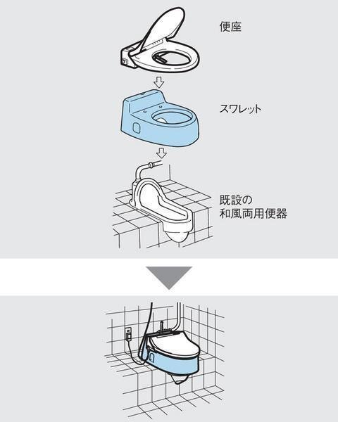 | ※写真では、便座・紙巻器・タオルリング・踏台が掲載されておりますが、付属されませんのでご注意ください。 |