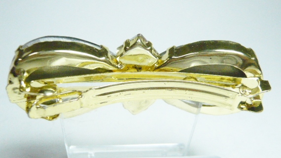 インパクト抜群 クリスタルリボン バレッタ  ベージュ