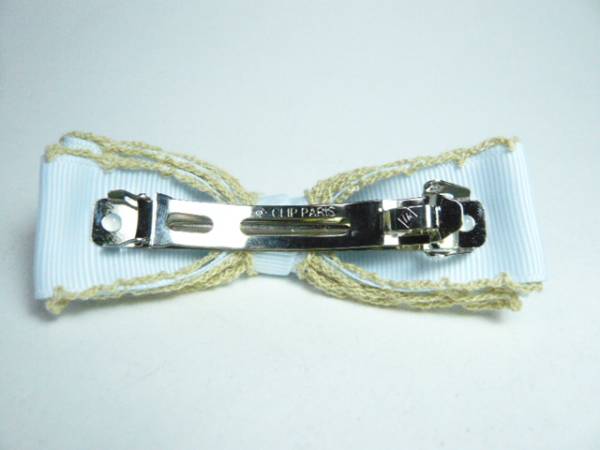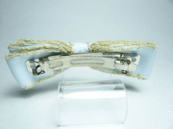 誰よりも可愛くグログラン リボン バレッタ サックス