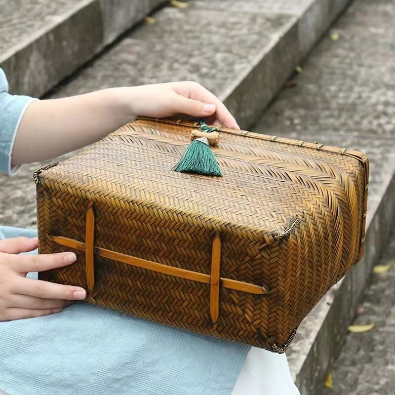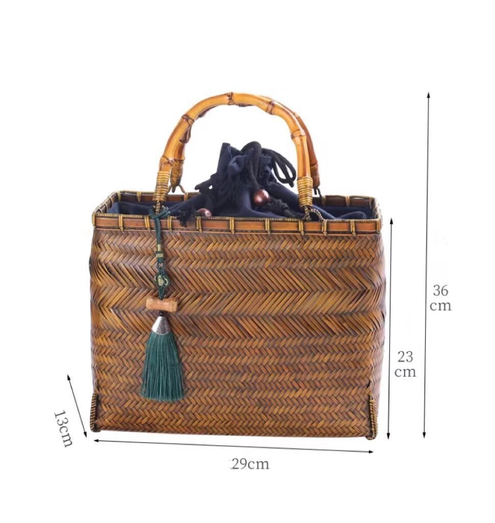 高級感満載!バスケット 収納かご おしゃれ竹籠 編み 取っ手 持ち手  手作りトートバスケット 持ち手 自然の良品