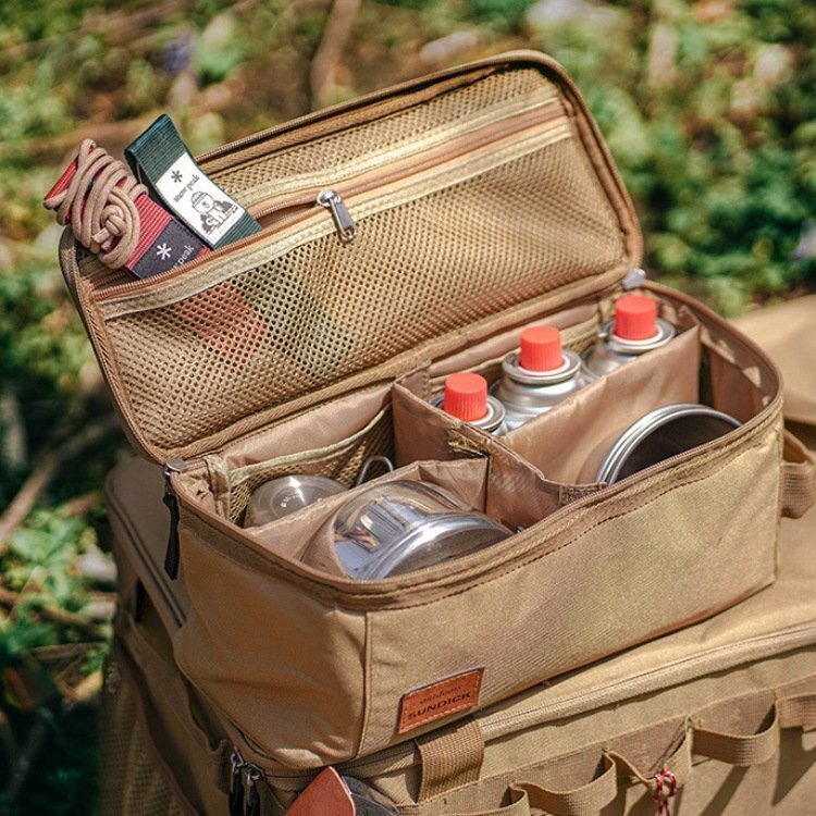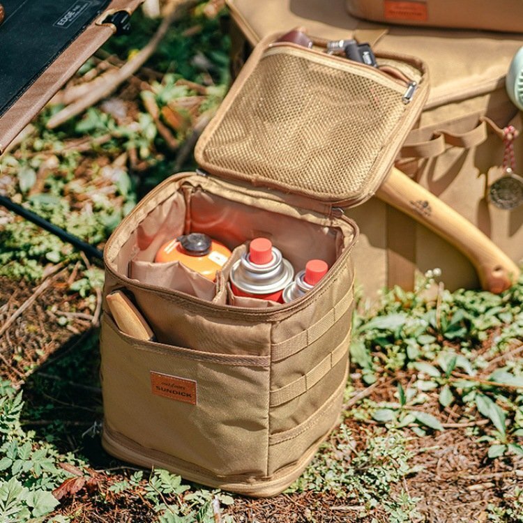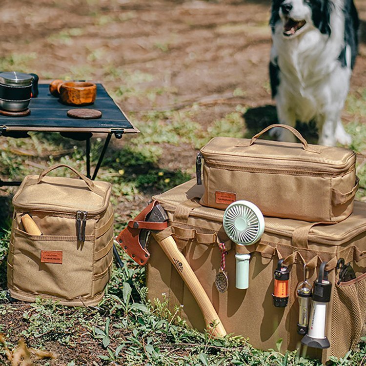 各種キャンプ用品や設営道具、カトラリーなどの収納に最適な手頃な大きさのアウトドア用ツールバッグです。
