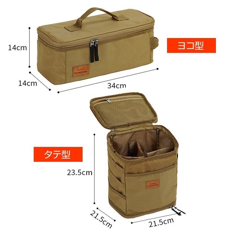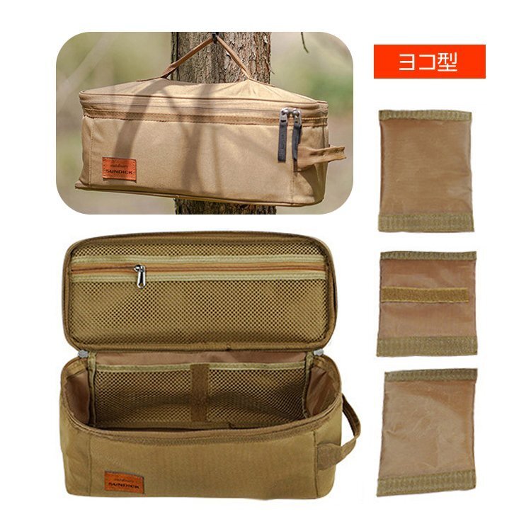 ◆アウトドア用ツールバッグ 高耐久600Dナイロン製 撥水生地 SBS社製ジッパー 整理楽々収納バッグ 道具入れ 底板付 キャンプ用品 調理器具 フィールドギアの収納に【横長タイプ】SDKBG341414