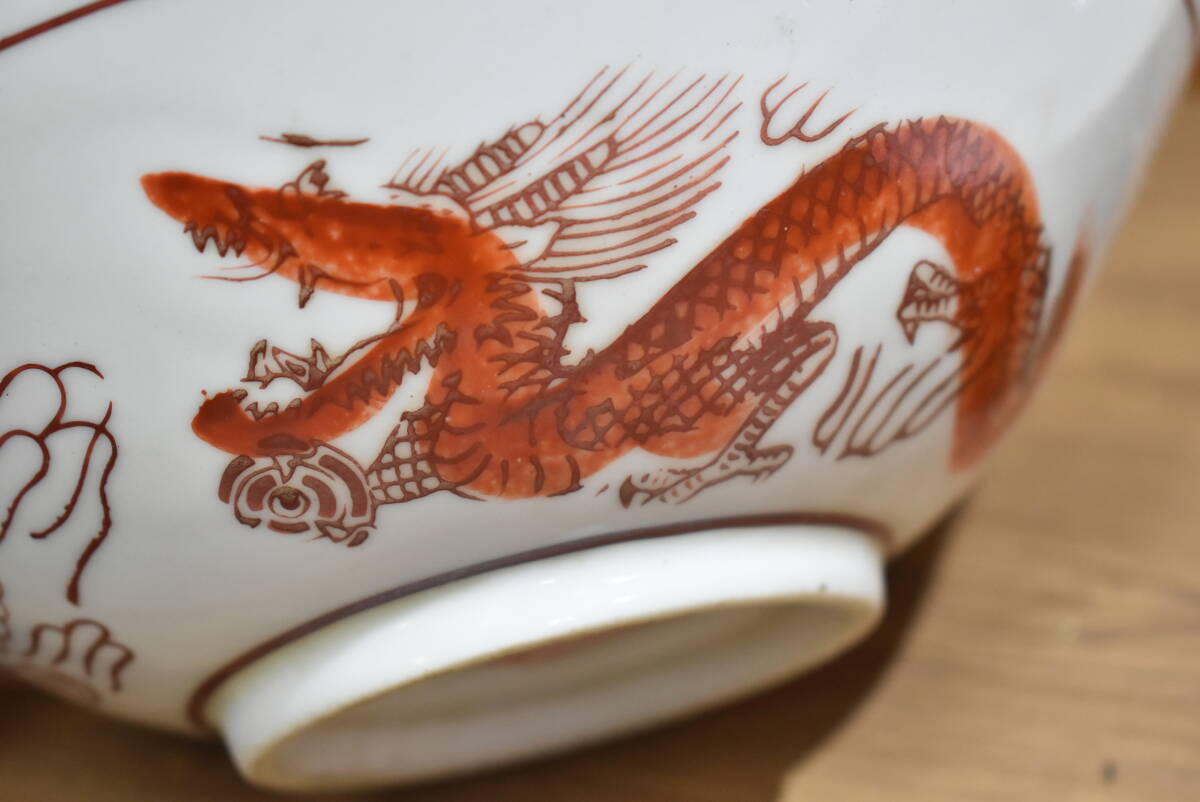 ラーメン鉢/どんぶり/器/大清乾隆年製/昭和レトロ/古道具/雷紋/3点セットの出品になります。 コンディション 経年による傷や汚れがあります。 撮影状況や光の加減で画像の色合いが現物と若干異なる場合がございます。 画像に写っているものが全てです。 現状でのお渡しとなります。 神経質な方のご入札はお控えください。 上記の点をご理解ご了承いただいた上で、ご入札お願いいたします。 |