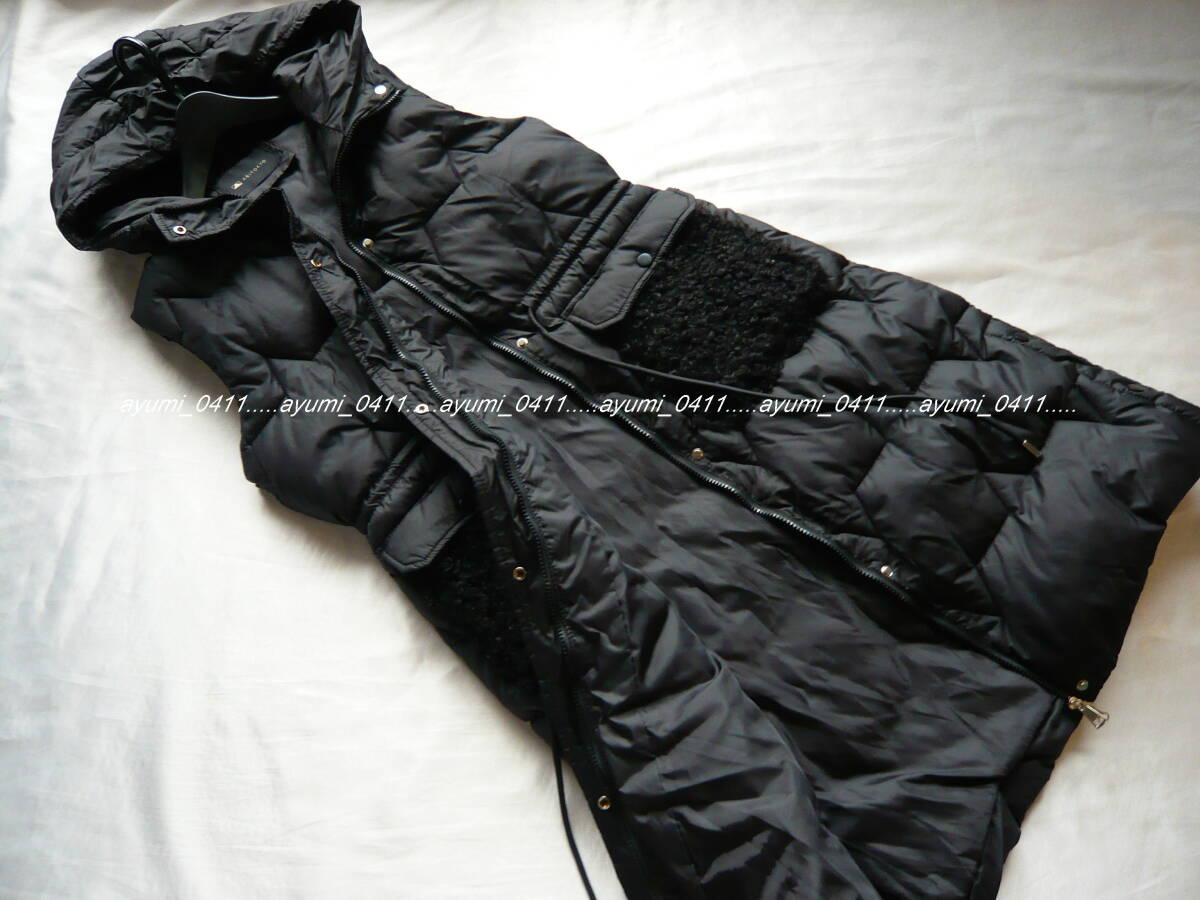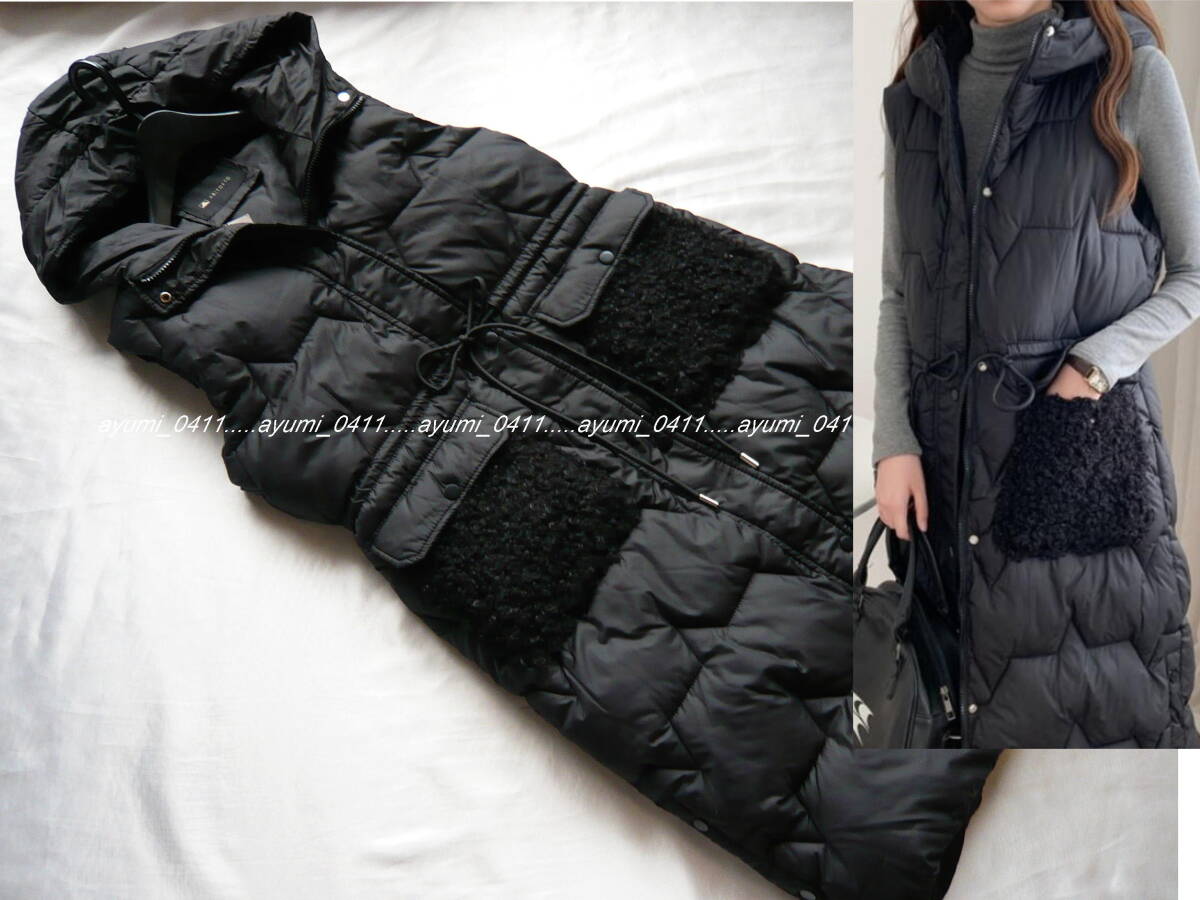 ★未使用★ABITOKYO アビトーキョー/黒ブラック・ボアポケット ドロスト ふっくら中綿入りキルティング フード付きロングベスト/Free