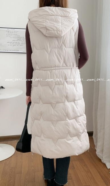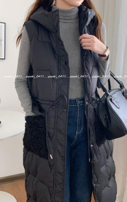 ABITOKYOの黒・ボアポケット ふっくら中綿入りキルティング フード付きロングベストです♪
